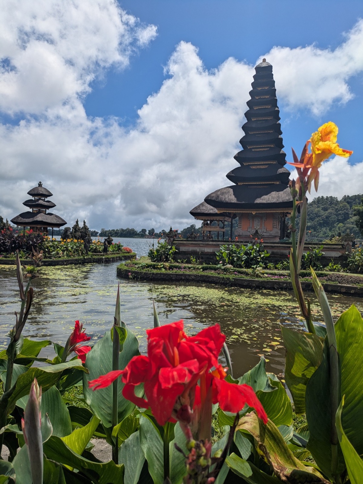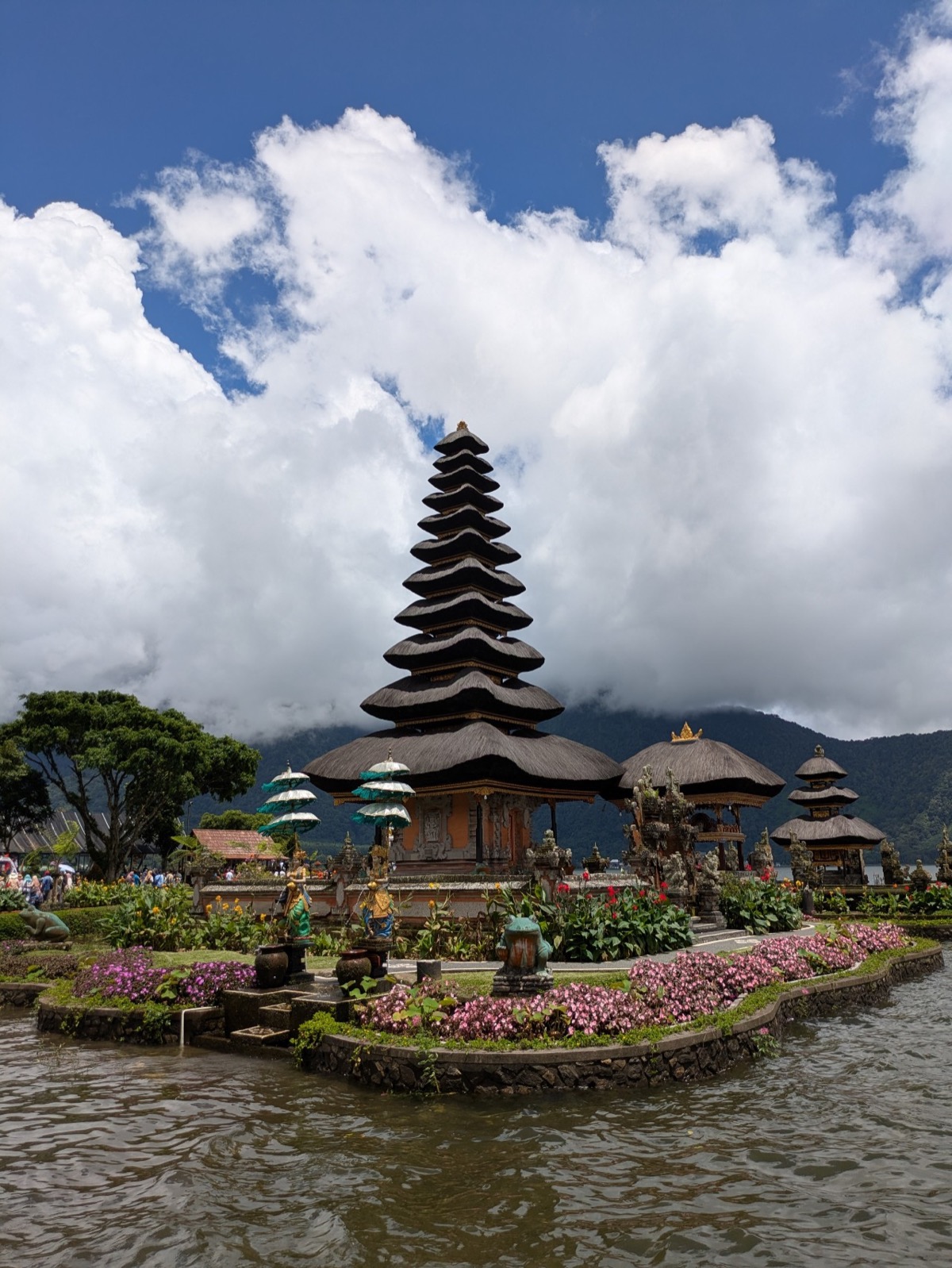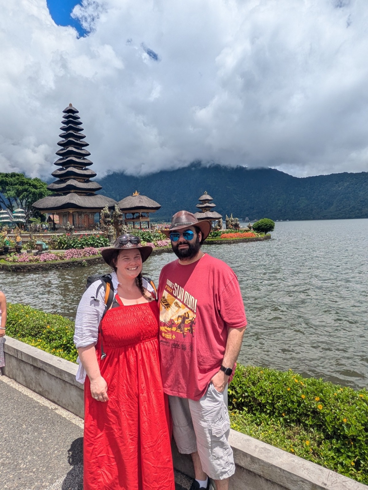 Back in the car we headed up into the Mountains to Ulun danu beratan temple. It is a Hindu temple that sits atop a plateau on Lake Beratan about 1,500 meters above sea level. Ulun Danu was built in adoration of the Goddess Danu. Danu, in the Balinese tongue, means lake, while the goddess Danu is queen of water, lakes and rivers. It’s is a really beautiful spot. The lake is also super important to Balinese agriculture. Abyu came into the temple with us and showed us around and took pictures for us. The area was a little busy but still so relaxing. Anthony wanted me to tell everyone he had to pay 2000 Indonesian rupiah to go to the toilet.