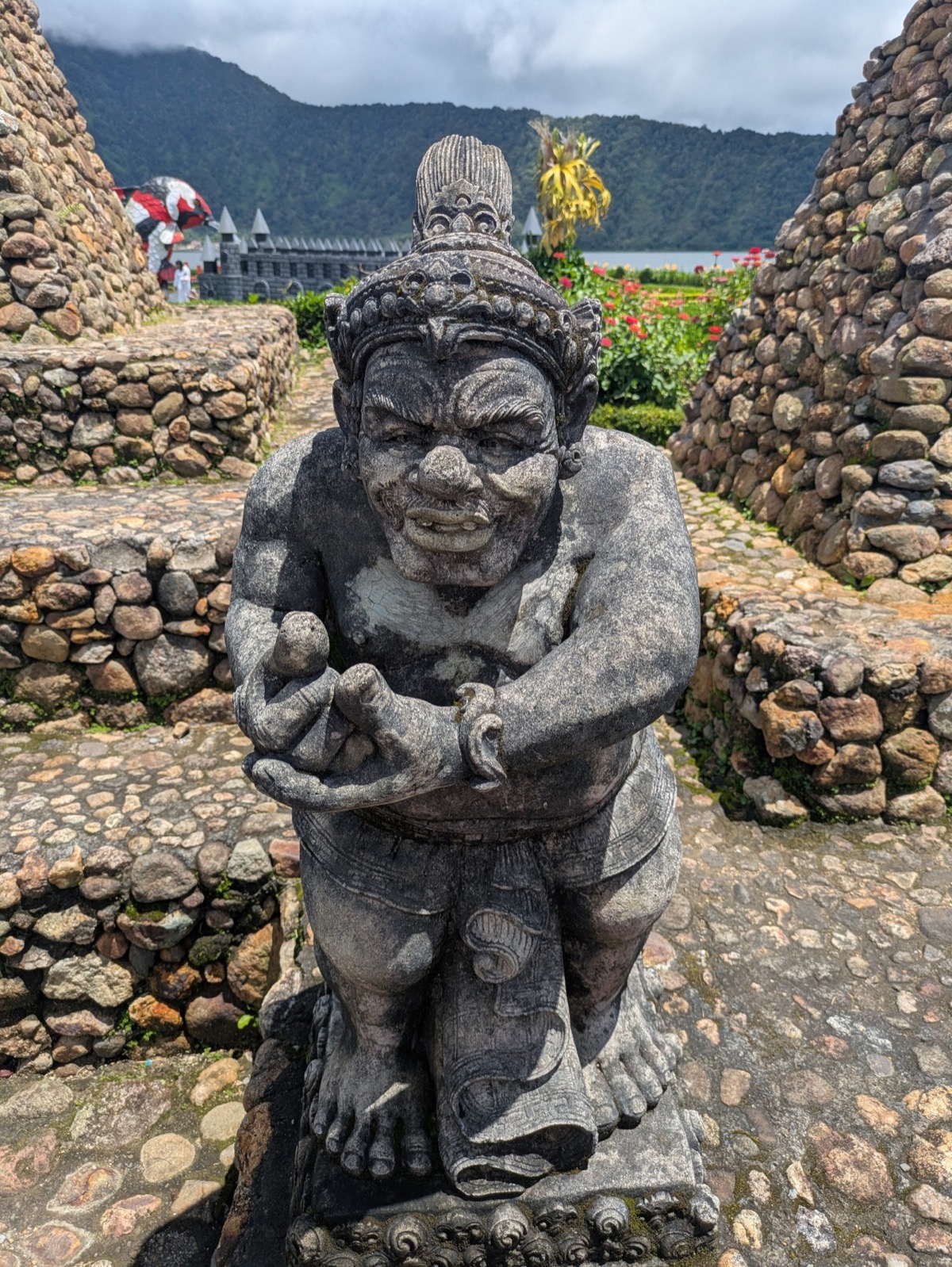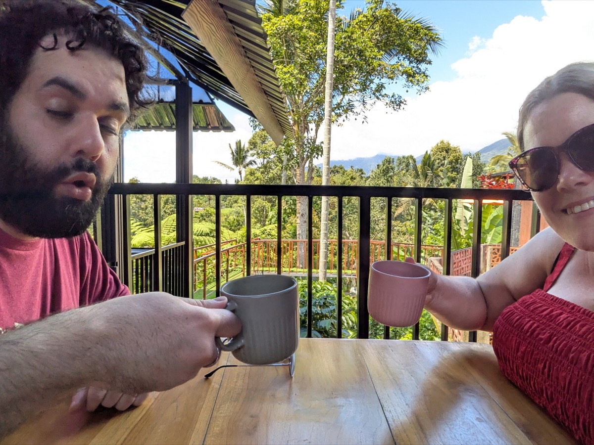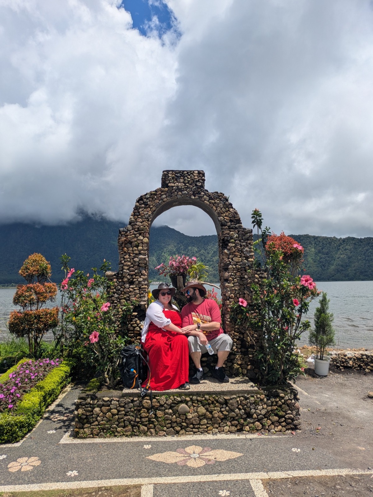 Back in the car we headed up into the Mountains to Ulun danu beratan temple. It is a Hindu temple that sits atop a plateau on Lake Beratan about 1,500 meters above sea level. Ulun Danu was built in adoration of the Goddess Danu. Danu, in the Balinese tongue, means lake, while the goddess Danu is queen of water, lakes and rivers. It’s is a really beautiful spot. The lake is also super important to Balinese agriculture. Abyu came into the temple with us and showed us around and took pictures for us. The area was a little busy but still so relaxing. Anthony wanted me to tell everyone he had to pay 2000 Indonesian rupiah to go to the toilet.