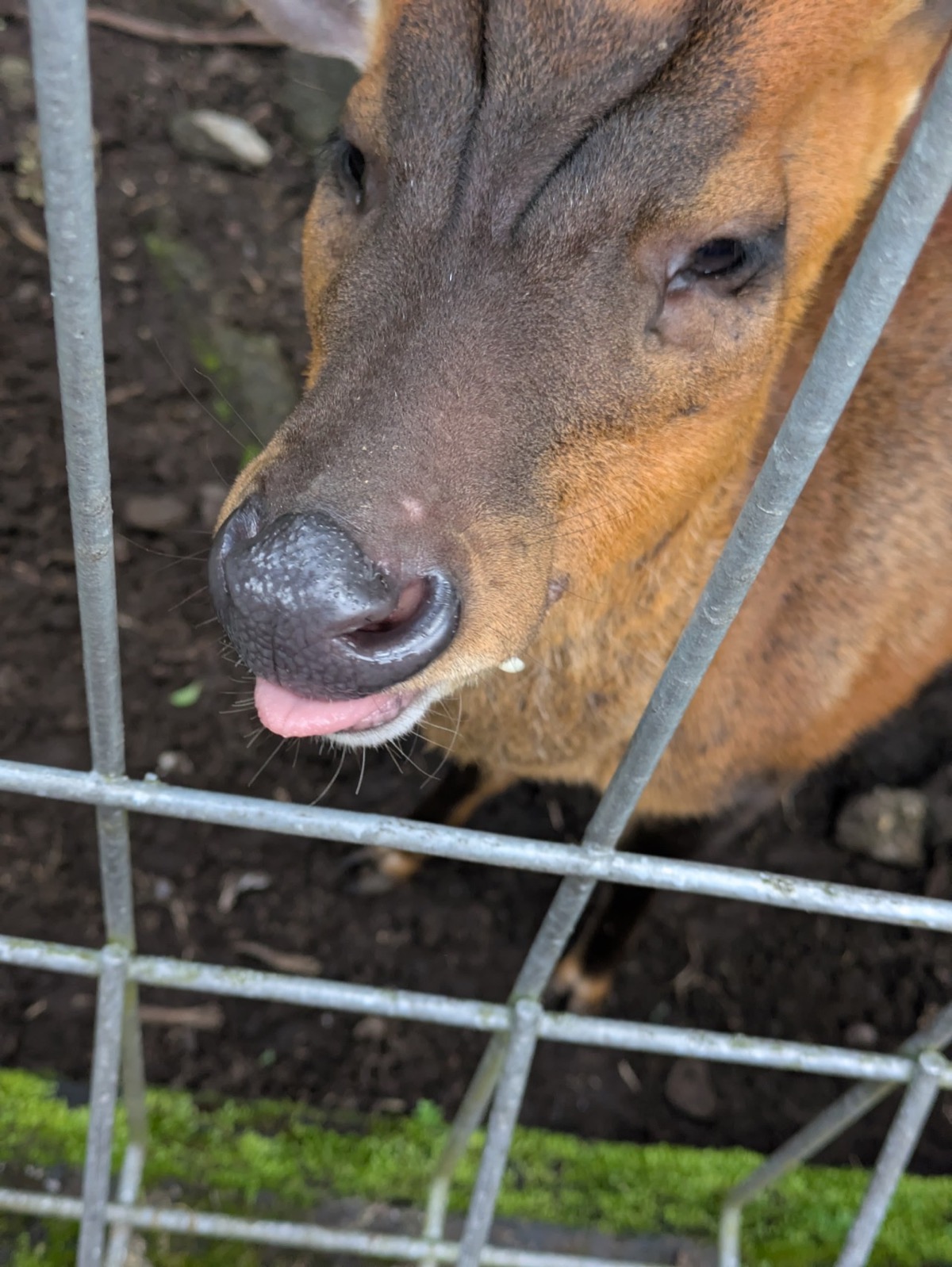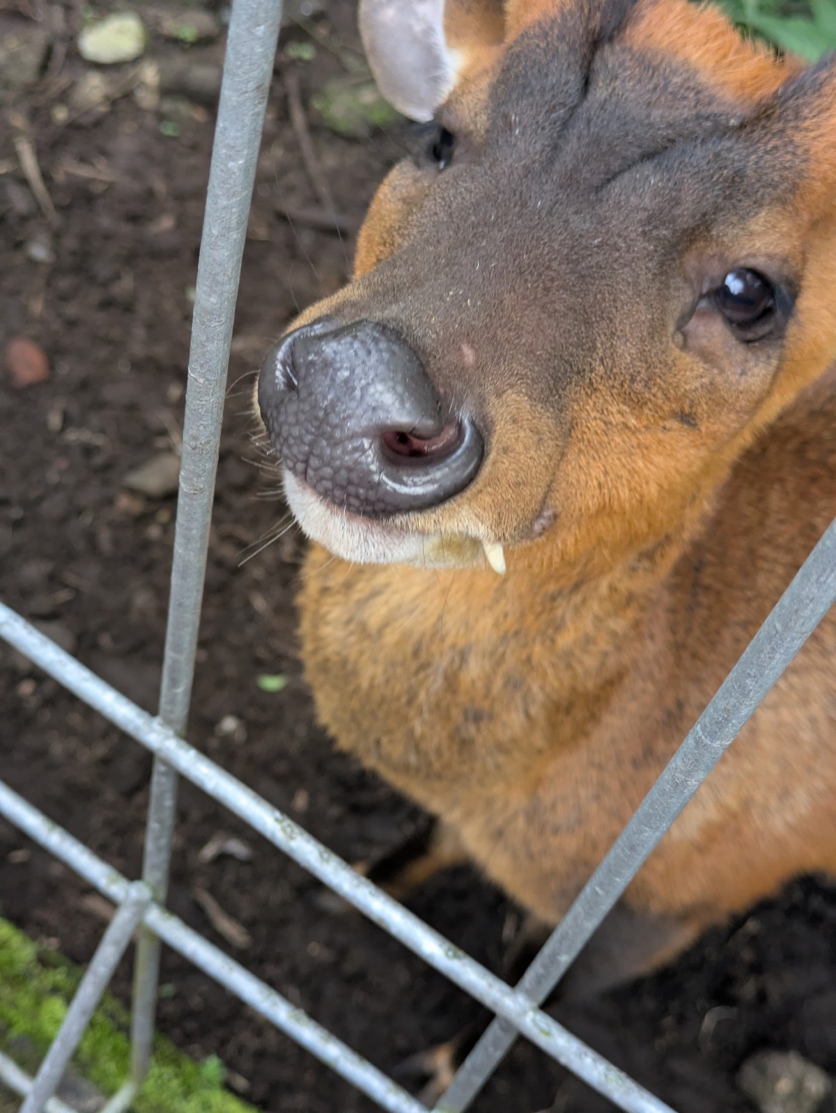 On the way out we went past the cutest little deer they have little fangs and of course I wanted to pat him. When I went up and patted him he gave me a big lick! I loved him, especially his little fangs.