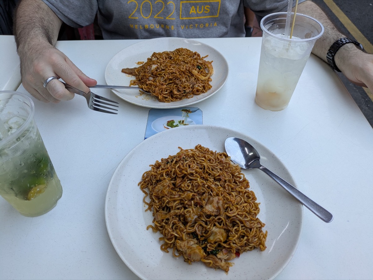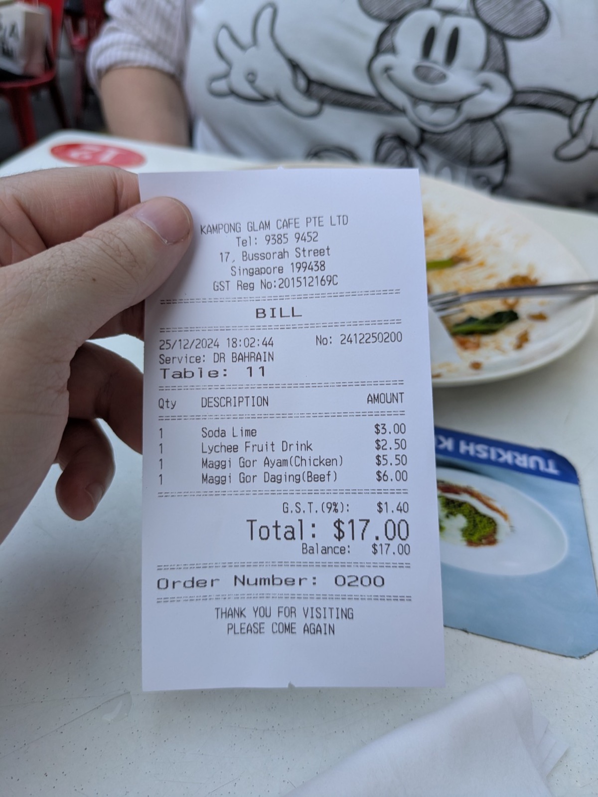 We had planned to go to one of our favourite restaurants for Christmas dinner which is also in my favourite part of Singapore. Kampong Glam cafe in the Arab Quarter. We made our way there and got a table and got some Maggi goreng noodles and I got the lime drink I love. It was just as good and just as cheap as the last time. I was so happy just being back here.