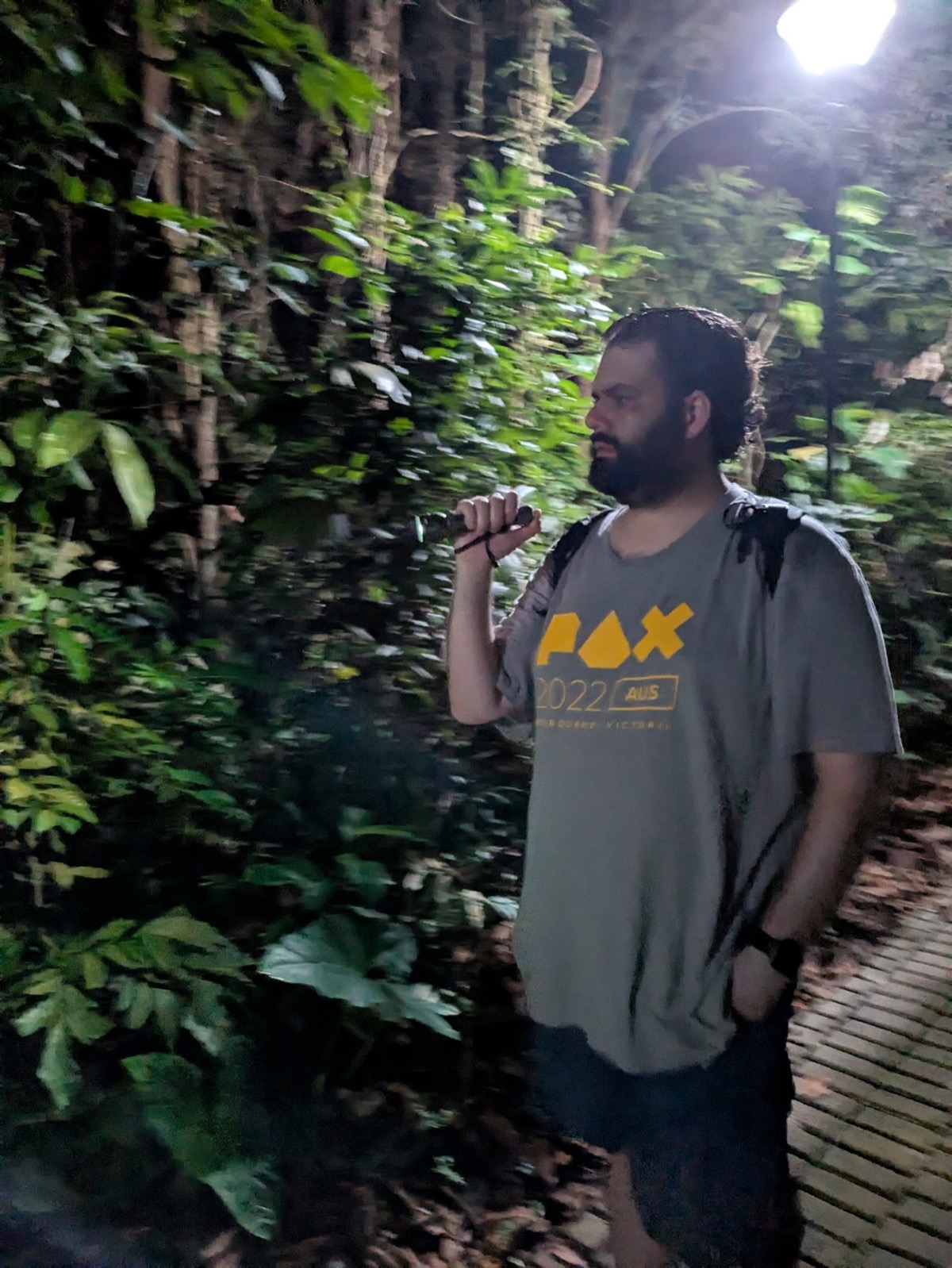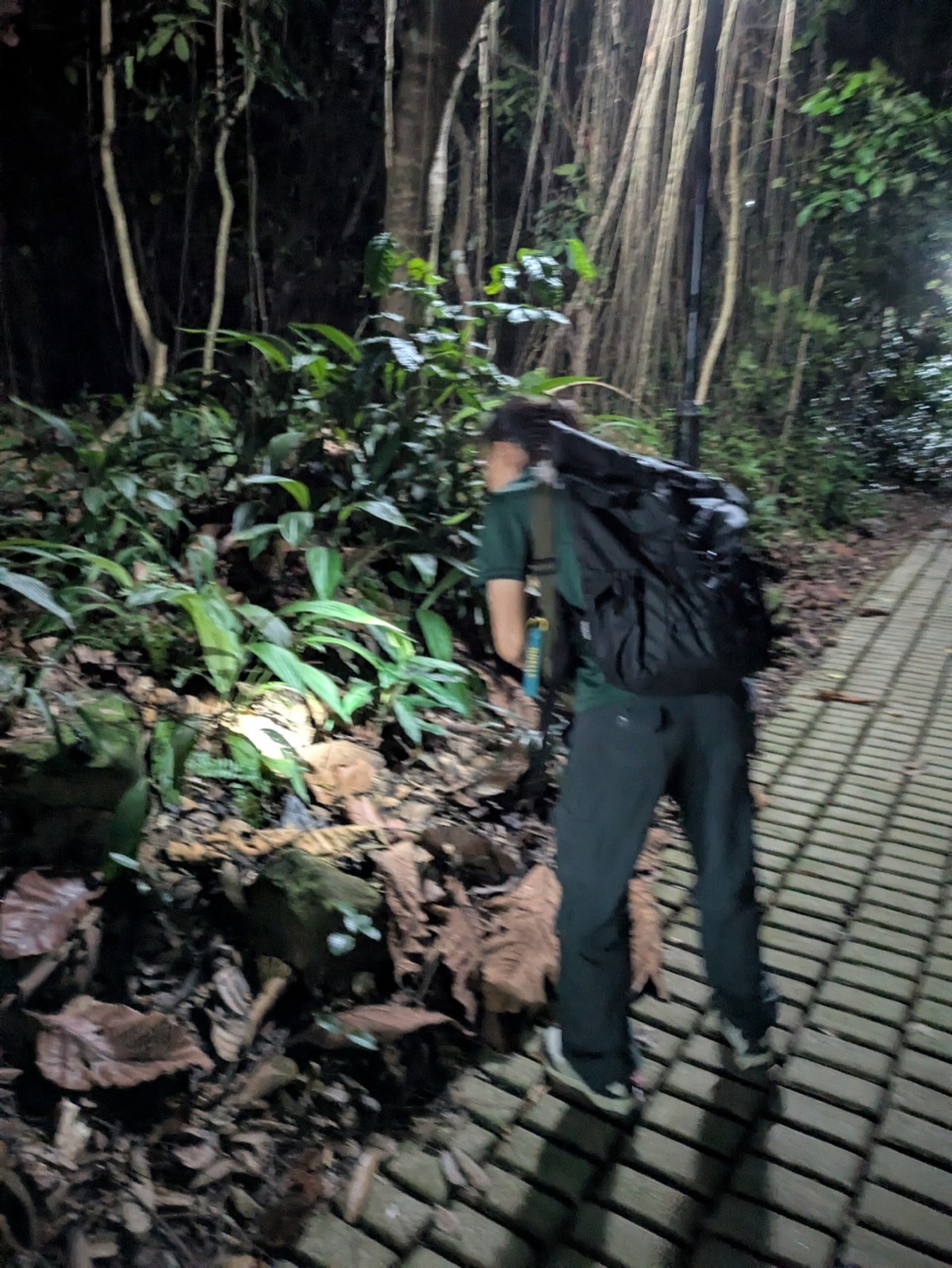 From dinner we went to our night tour. Untamed Paths run a couple of different tours to promote the local native animals in Singapore. They are a really cool company and if you are ever in Singapore you should check them out. Tonight we were doing the Flight of the Colugos tour. We were met by our guide Noelle who took us on a walk through the Bukit Batok Nature Park. Our main goal of tonight was to find the Colugo. I did not know this was even an animal before I found this tour. It is also called the Sunda flying lemur or the Malayan flying lemur. They are strange looking creatures who do not fly but can glide between trees with their strange wings. We headed into the park armed with flashlights and a sense of adventure. Our guide Noelle had literally the most amazing eyes and thought the night we saw about 10 different Colugos including a baby one.