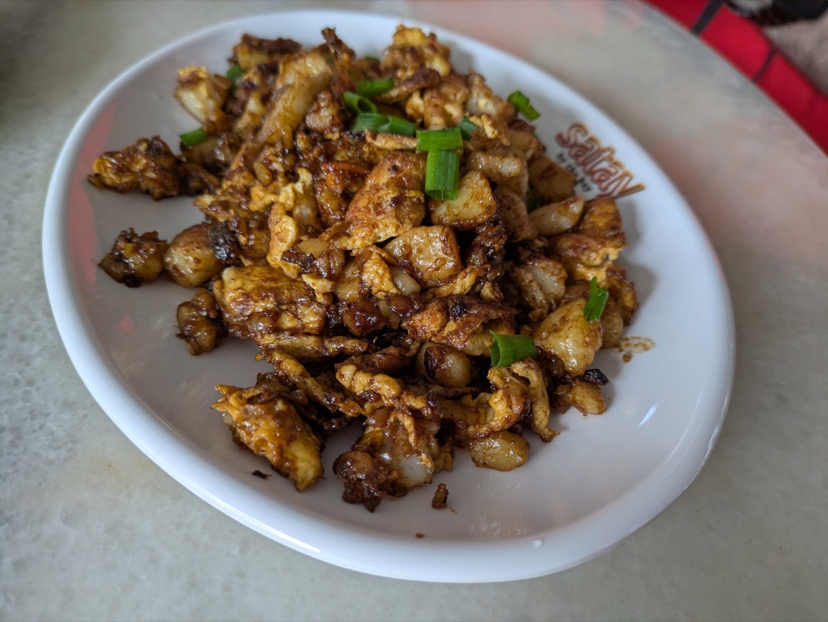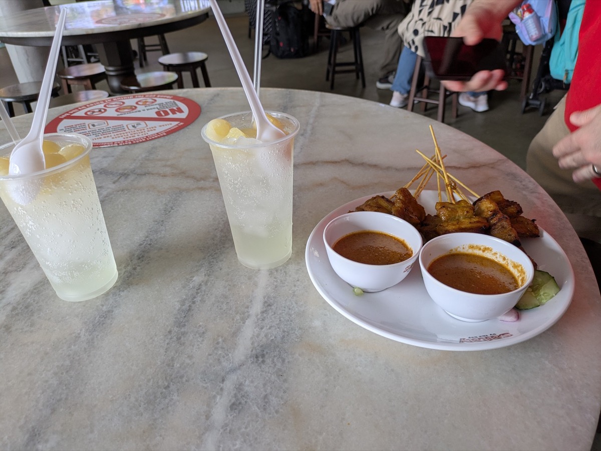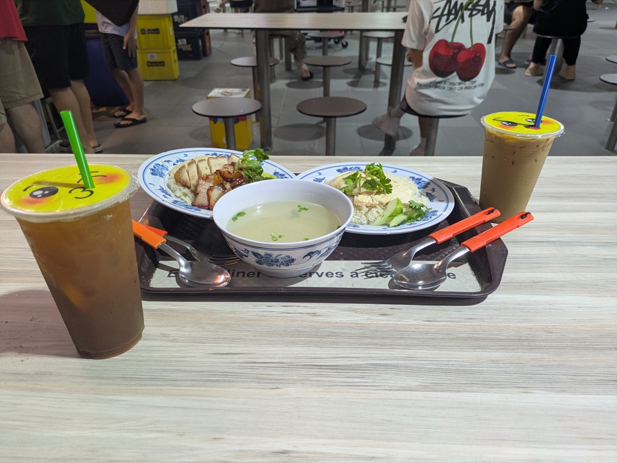 We decided to start with breakfast at a Hawker Centre. We are staying very close to Old Airport Road Hawker Centre so we wandered down there to get some food. We decided to get some chicken rice and pork rice and a coffee and tea. It was really good.