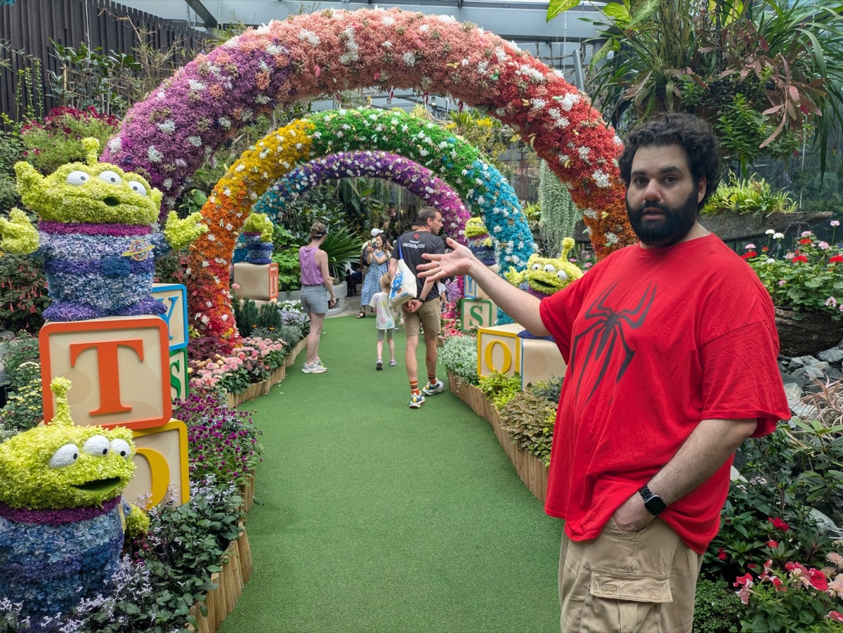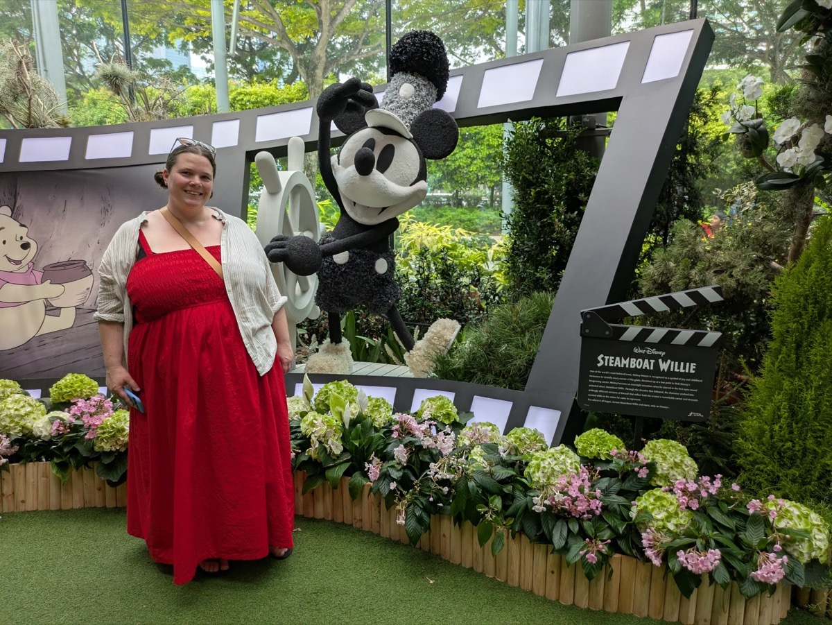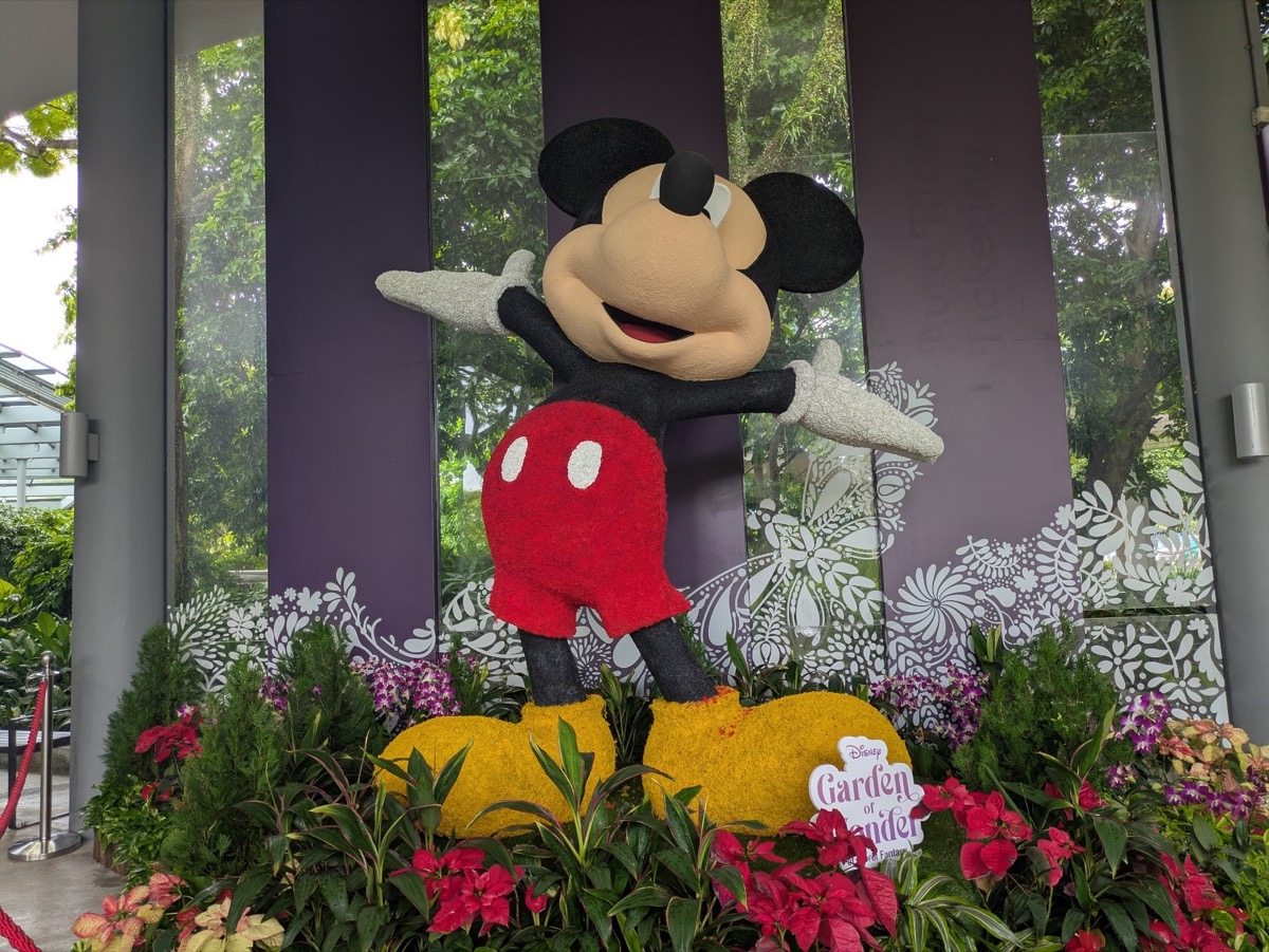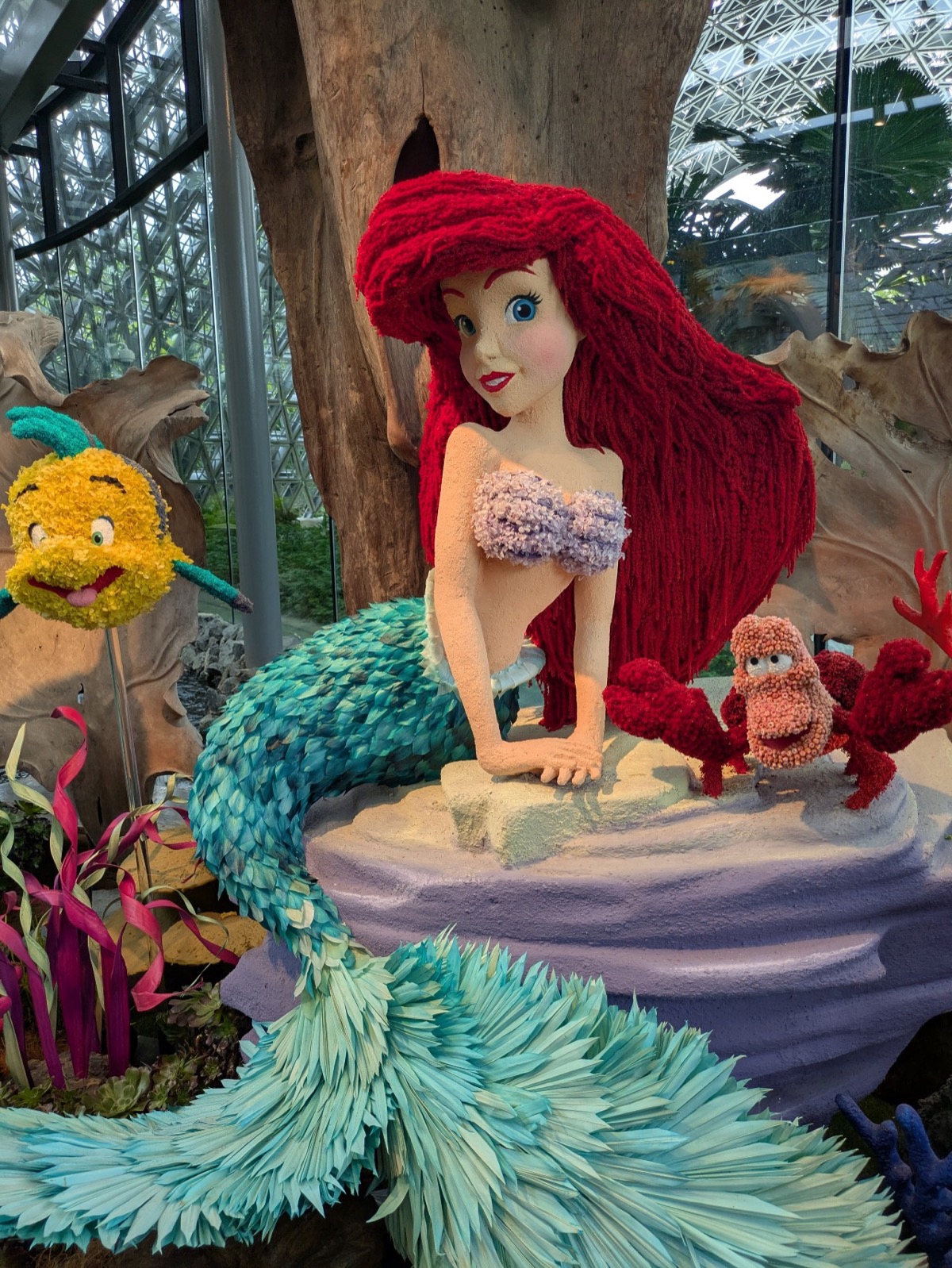 We arrived at Bayfront Station and headed to our first activity for today which is Floral Fantasy. Floral fantasy features large-scale topiary, floral sculptures and tropical plants normally with a theme in them. The theme changes fairly often. Luckily for me a new theme just opened up which is Disney. It was pretty amazing seeing how clever people are to make these huge statues with heaps of dyed flowers. My favourite bit is in the middle of Floral Fantasy there was a water section and a huge tank with poison dart frogs. They were so bright and amazing. We spent a bit of time here just watching them.