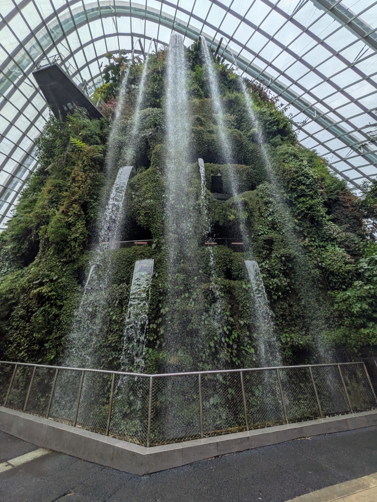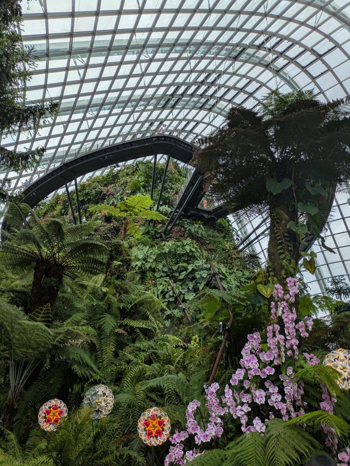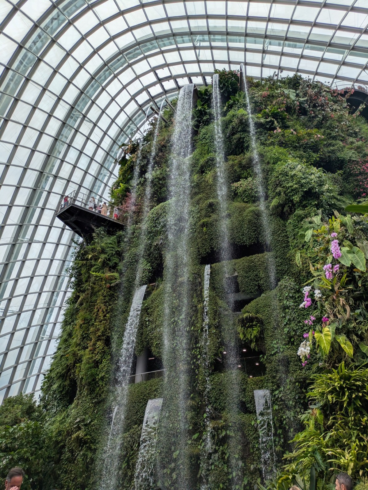 After Floral Fantasy we jumped on the shuttle bus which was included in our ticket and we headed over to the cloud forest. We had been here 6 years ago but wanted to go again as it was so cool last time. For those that don’t know the cloud forest is a huge dome that is home to the to one of the world’s tallest indoor waterfalls and a lush mountain clad with plants from around the world. It’s temperature is amazing after being in the humidity and it is just such a peaceful place even when filled with tourists. We spent a long time is here enjoying the cool air and looking at all the plants. They had an amazing orchid section from the Philippines along the back. It was a great way to get out of the main heat of the day.