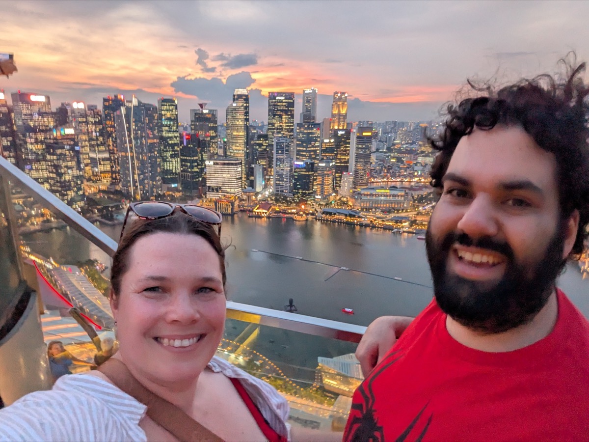 After a quick rest it was back to Bayfront station to go up to the top to Marina Bay Sands Sky Park. The view up here was pretty cool though the price is crazy. If you are not sure what Marina Bay Sands is its the biggest building in Singapore and that has an infinity pool on top of it. We timed it right to get up while it was still light but not too far from sunset. It was super relaxing standing up the top watching the sun disappear and the colours change.