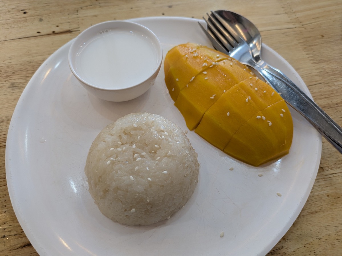 We arrived in Phuket got through the gaggle of locals asking if you want a taxi and then made our way to a restaurant to have the first thing I wanted try in Thailand, Mango sticky rice. I am an avid watcher of the YouTubers Kara and Nate and have watched them from the start. Early on Kara would go on and on about Mango sticky rice when they were in Thailand. So of course it was first on my list to try. We ordered sticky rice and a smoothie from a local restaurant and it was amazing. I had a pineapple smoothie and I think it is up there with one of the best drinks I have ever had.