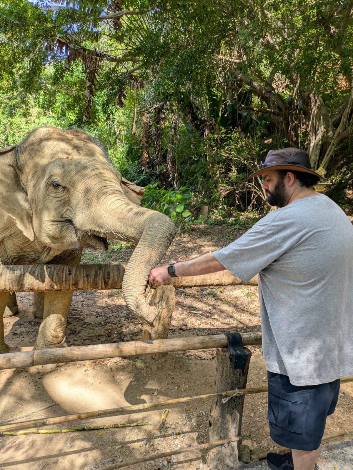 We then went over to feed Sudjai (The deepest love at the bottom of your heart) 60 yrs she is the oldest elephant and she is also known as Granny from how she chews. It was such and amazing experience. Anthony kept trying to feed Granny but another elephant Wassana (Destiny) 48 yrs kept trying to grab bananas to stash.
