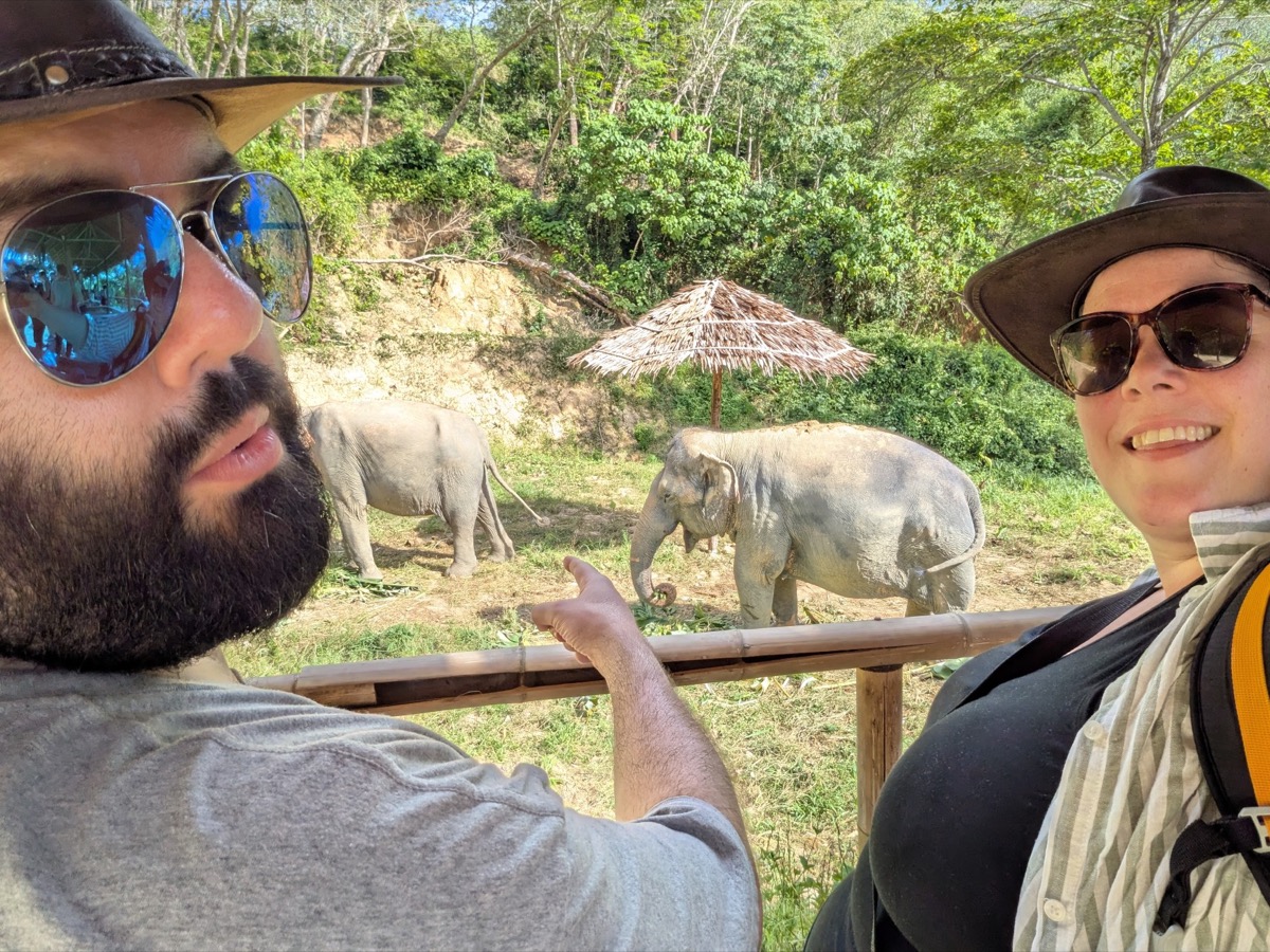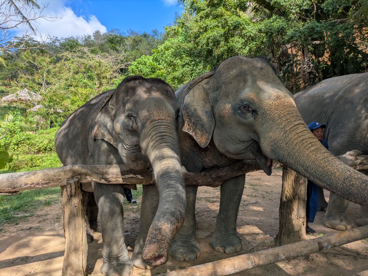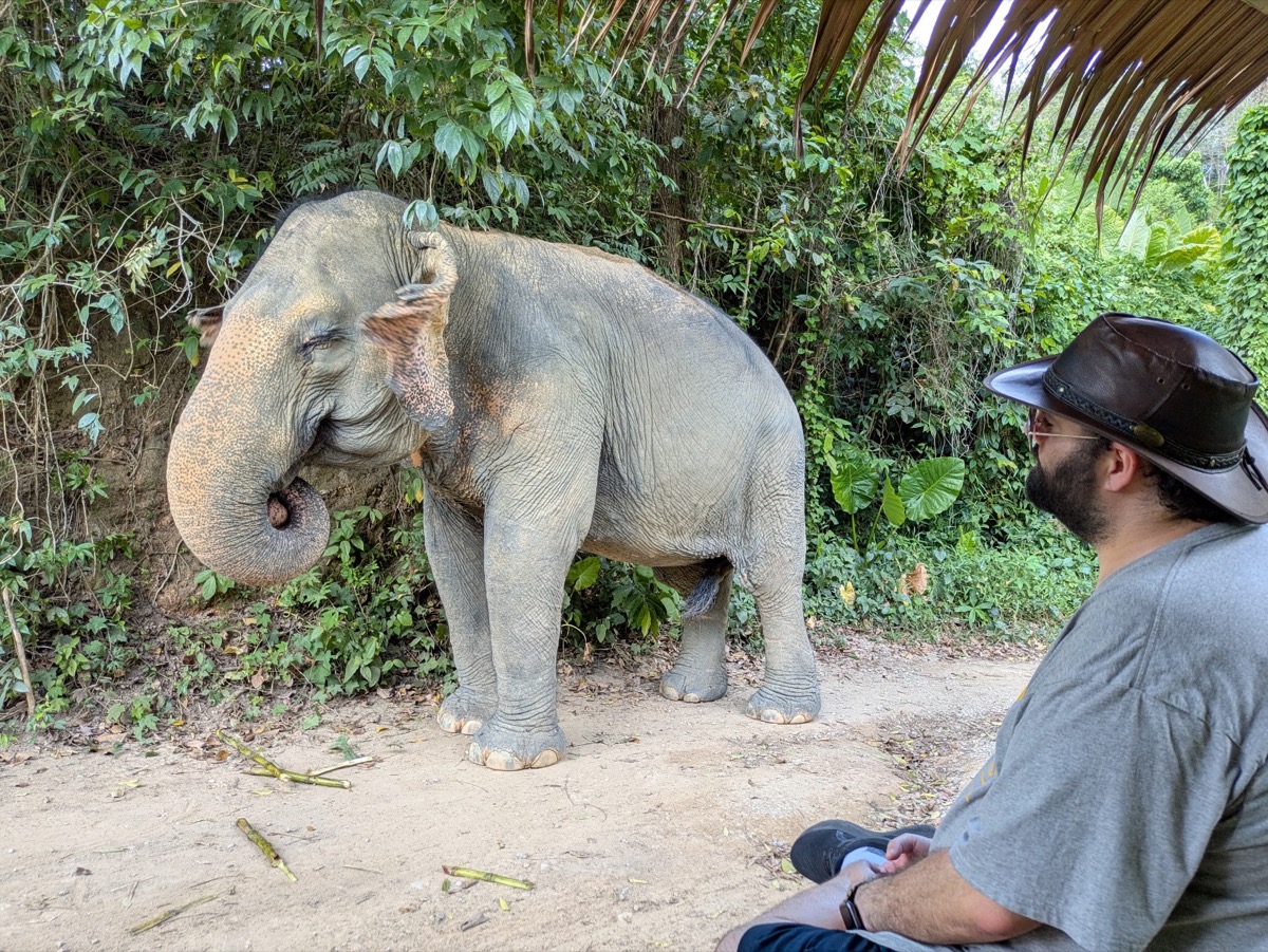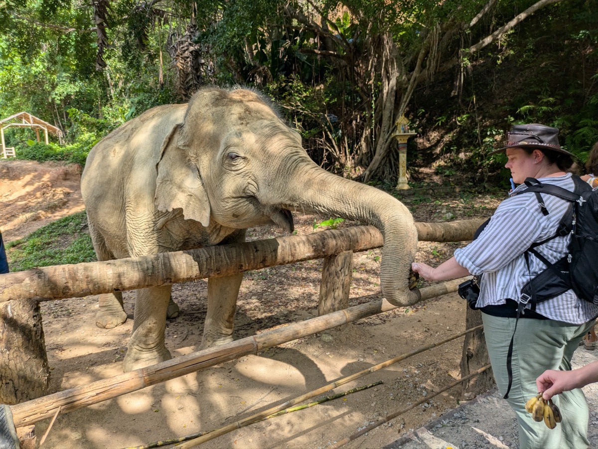 We made our way back to the main city to get ready for our tour. I had spent a very long time researching Ethical elephant sanctuaries as I wanted to see elephants but I do not want my tourist money to go to a place that is not ethical and hurts the elephants. This is not a easy task as most sanctuaries say they are ethical but the are not. Responsible Travel Website was a great site to use. I happened to come across Hidden Forest Elephant Sanctuary and got very interested in learning their story. elephant speciasts Kong and Louise Rogerson, opened up the Sanctuary in Nov 2023. Louise was actually doing the tours with us. This elephant sanctuary is nestled in the hills of southern Phuket and is home to eight beautiful female elephants who are all rescued from the tourism riding industry. They are now able to roam freely, socialise with each other, and play naturally in the ponds, streams and muddy wallows throughout the land. I follow them on Instagram and the conditions some of these elephants have been in are appalling. There latest rescue is so malnurished and injured she won’t be out with the others for a few more months as they try and get her back to good health.