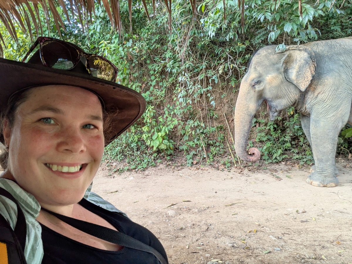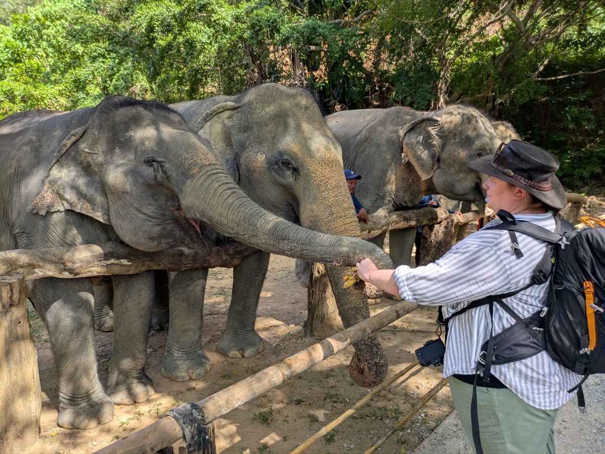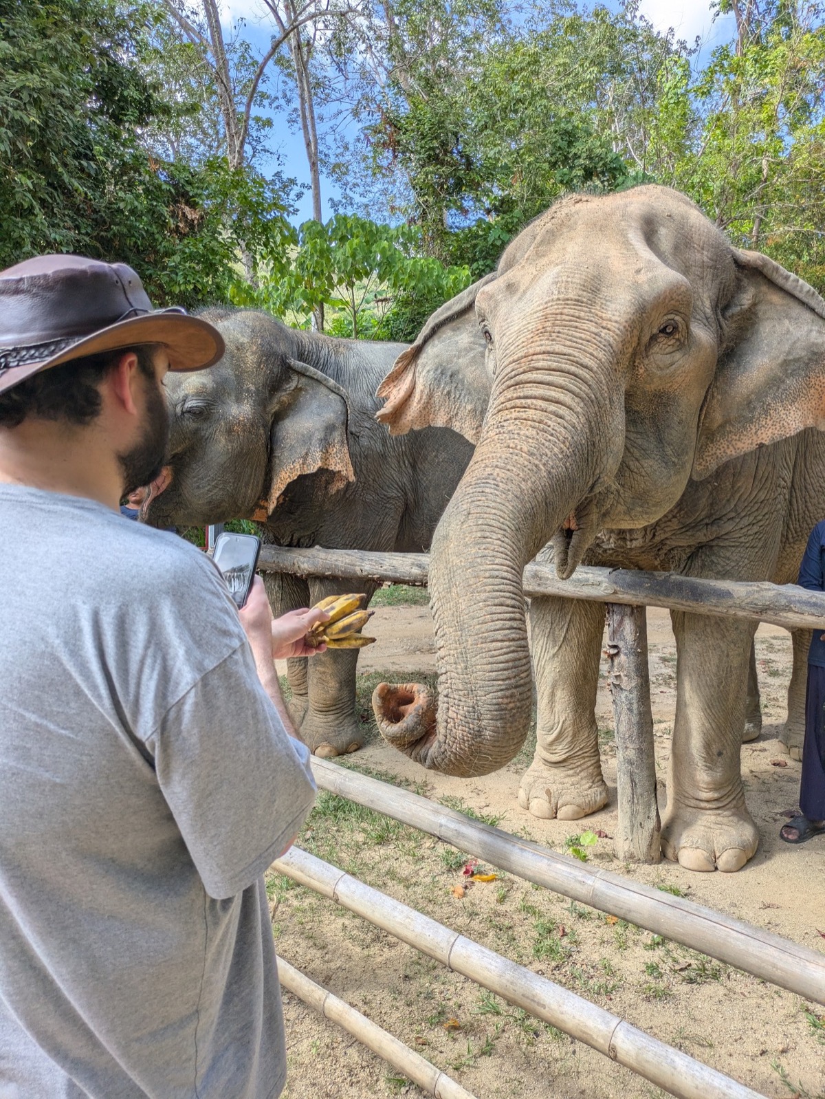 We made our way back to the main city to get ready for our tour. I had spent a very long time researching Ethical elephant sanctuaries as I wanted to see elephants but I do not want my tourist money to go to a place that is not ethical and hurts the elephants. This is not a easy task as most sanctuaries say they are ethical but the are not. Responsible Travel Website was a great site to use. I happened to come across Hidden Forest Elephant Sanctuary and got very interested in learning their story. elephant speciasts Kong and Louise Rogerson, opened up the Sanctuary in Nov 2023. Louise was actually doing the tours with us. This elephant sanctuary is nestled in the hills of southern Phuket and is home to eight beautiful female elephants who are all rescued from the tourism riding industry. They are now able to roam freely, socialise with each other, and play naturally in the ponds, streams and muddy wallows throughout the land. I follow them on Instagram and the conditions some of these elephants have been in are appalling. There latest rescue is so malnurished and injured she won’t be out with the others for a few more months as they try and get her back to good health.