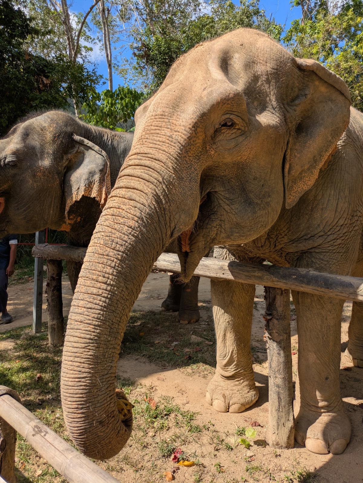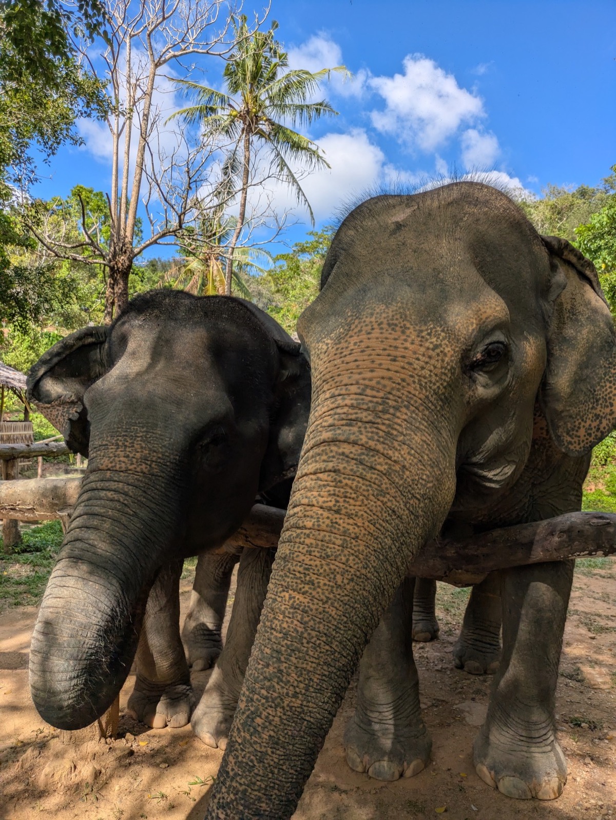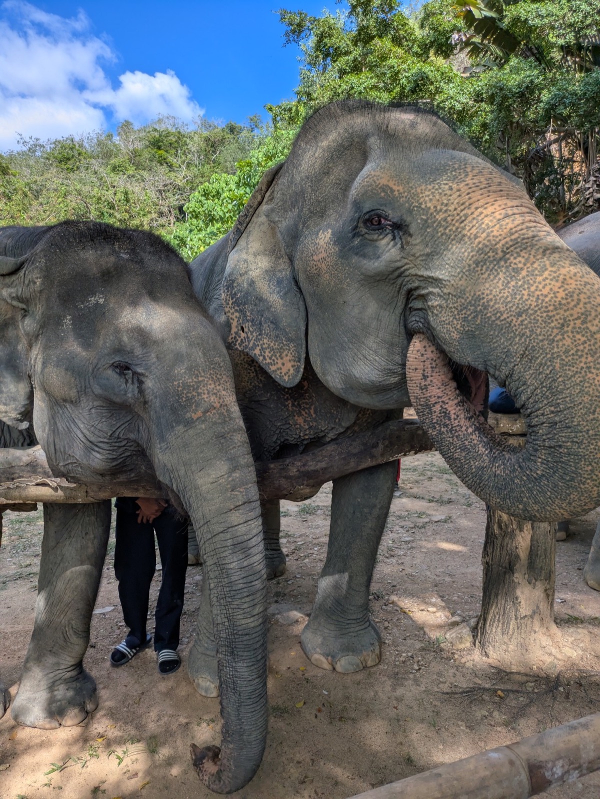 The others eventually came down slowly. We got to feed the 2 best friends Gaw Boon (Good Luck) 53 yrs and Nam Paerng (Honey) 59 yrs. These 2 are inseparable they are never more then 3 m apart and absolutely best friends they were so cute.