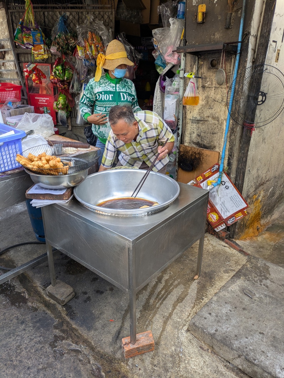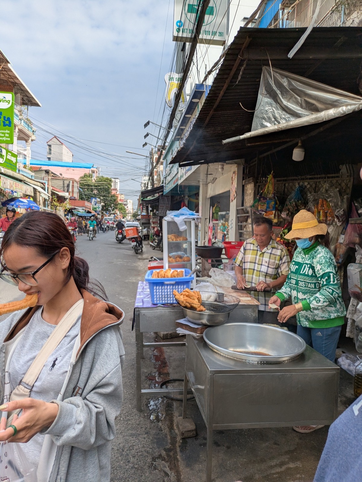 Vy then stopped at a small cart selling fried bread. The guides explained that these are a popular breakfast for high schoolers as they are quick to eat or snack on. In Phnom Penh they are called Nom Heng but in Siem reap they are called Nom Pong. They were amazing.