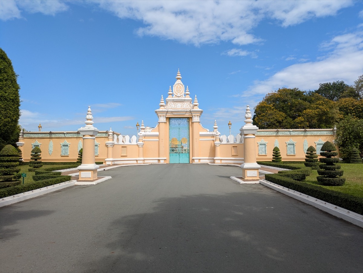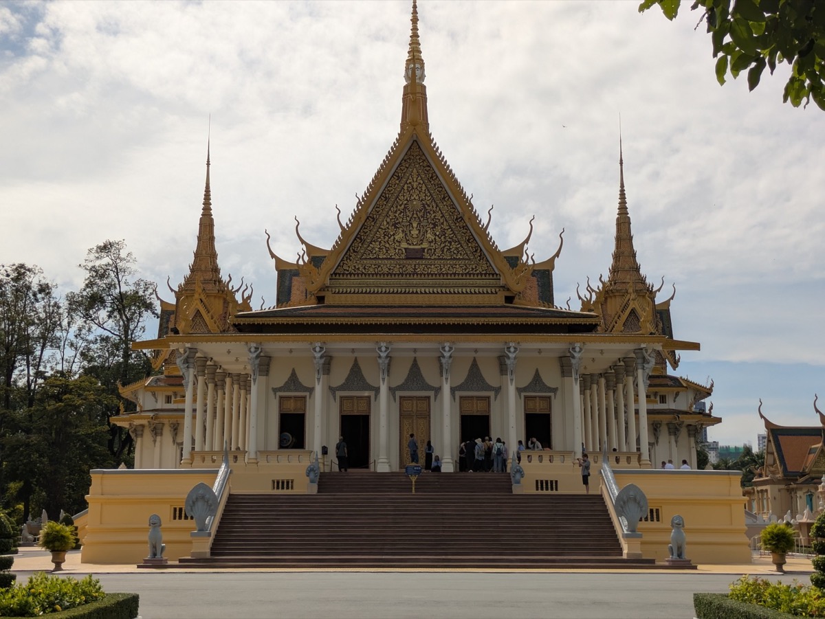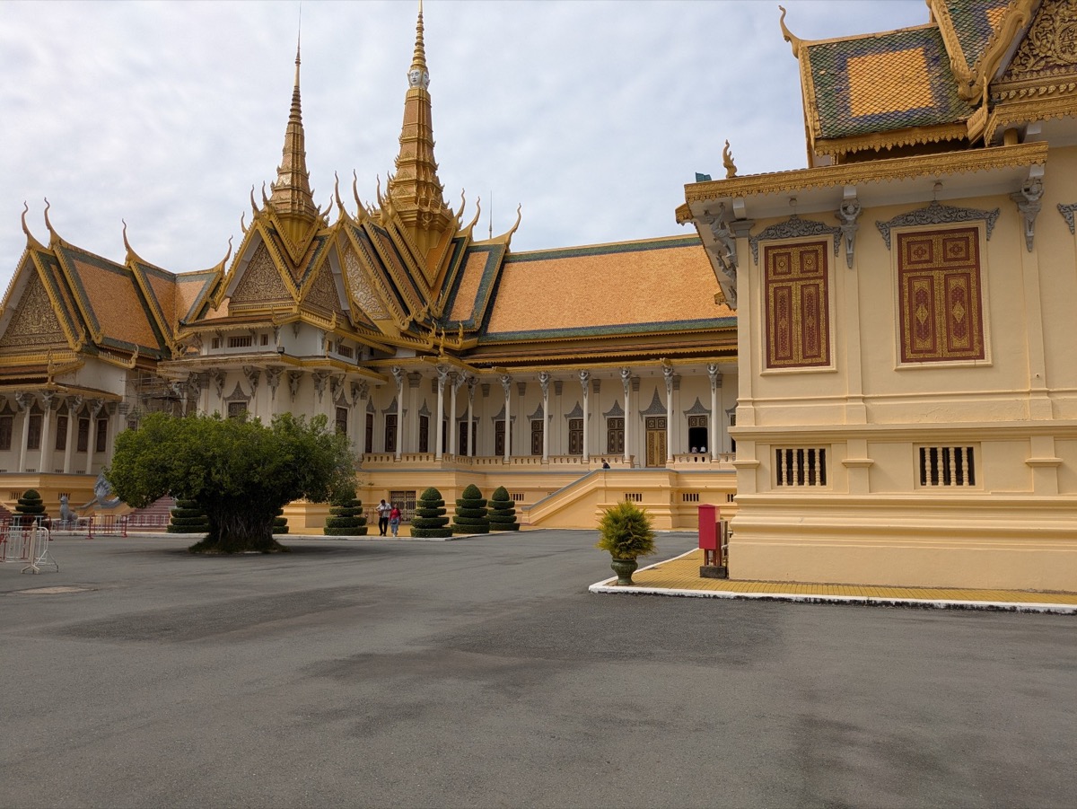 We got dropped back at the hotel and started to walk to the Royal Palace. The Royal Palace of Cambodia is a complex of buildings which serves as the official royal residence of the King of Cambodia. Its full name in Khmer is the Preah Barom Reacheaveang Chaktomuk Serey Mongkol. The current King and Queen of Cambodia live in the palace. Cambodia is also one of very few countries that elects their King. The king is elected for life from among the members of the Norodom and Sisowath bloodline who are at least 30 years old by the Royal Council of the Throne which consists of several senior political and religious figures.