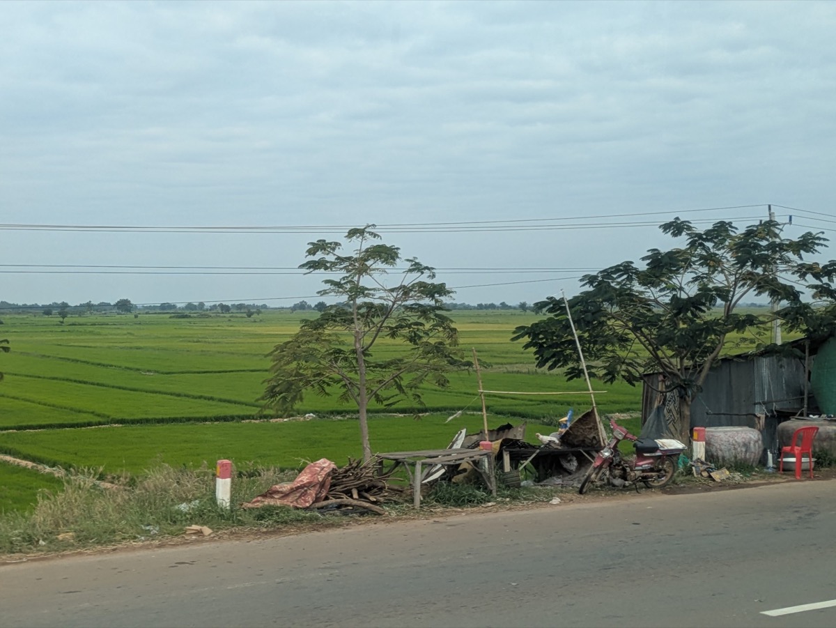 The ride was pretty uneventful we looked at the beautiful country side out the window. I was obsessed with the new style houses being built. They are all so colourful and cool. We made 2 stops, one was a toilet out stop and the other was for lunch. Anthony tried Beef Lok Lak which was pretty good. After 6 hours we arrived in Siem Reap.