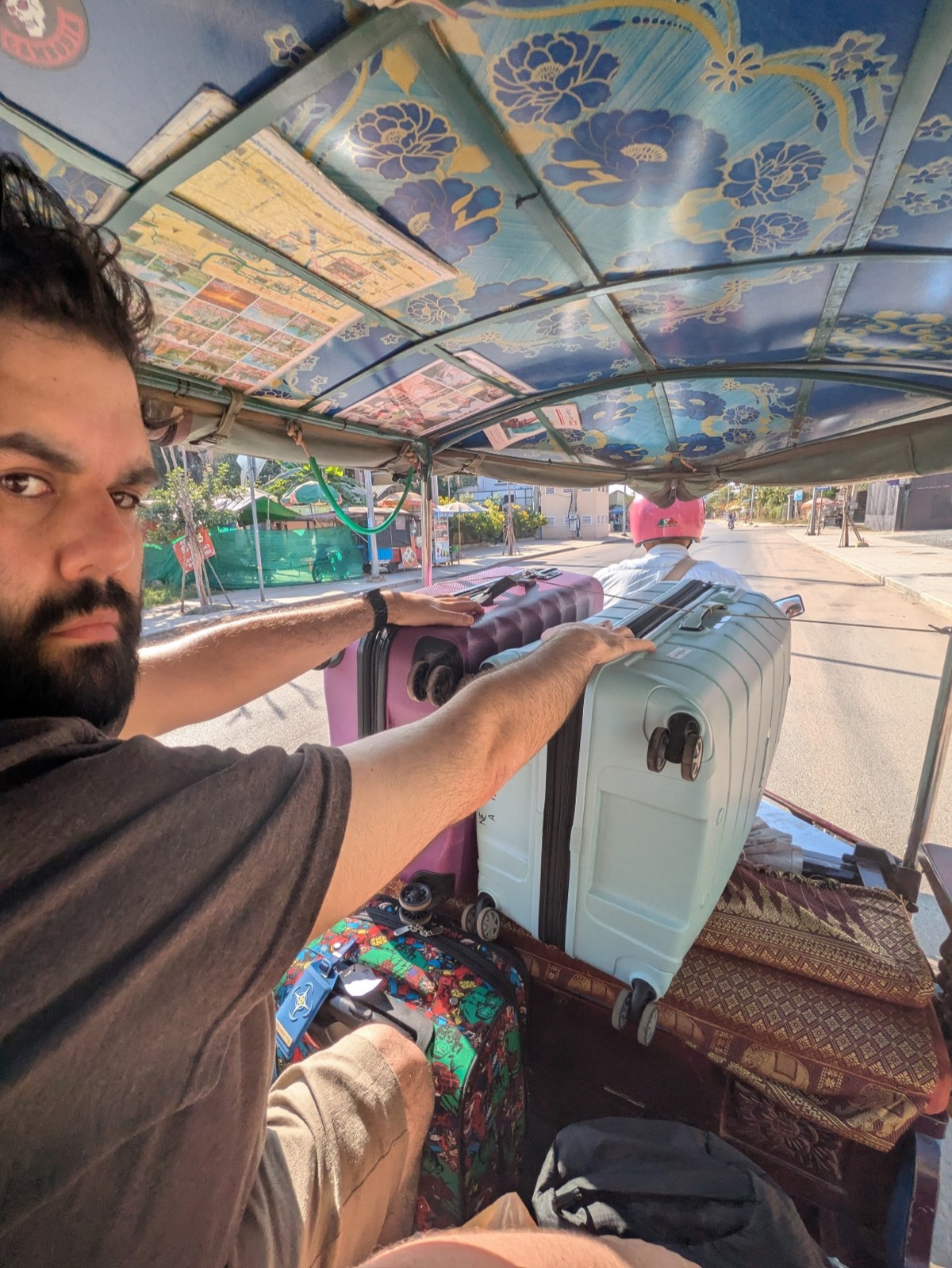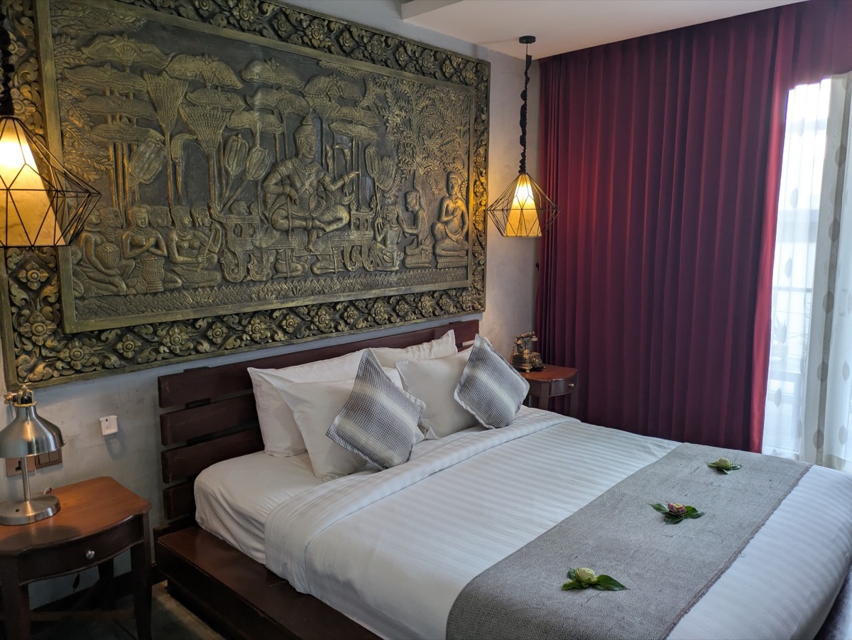 When we arrived the hotel had organised a tuk tuk to pick up us and our bags. Anthony was very worried about the bags falling off but luckily it wasn’t far and we arrived with no issues. The hotel is stunning it’s beautifully done and we have 3 rooms in our hotel room.
