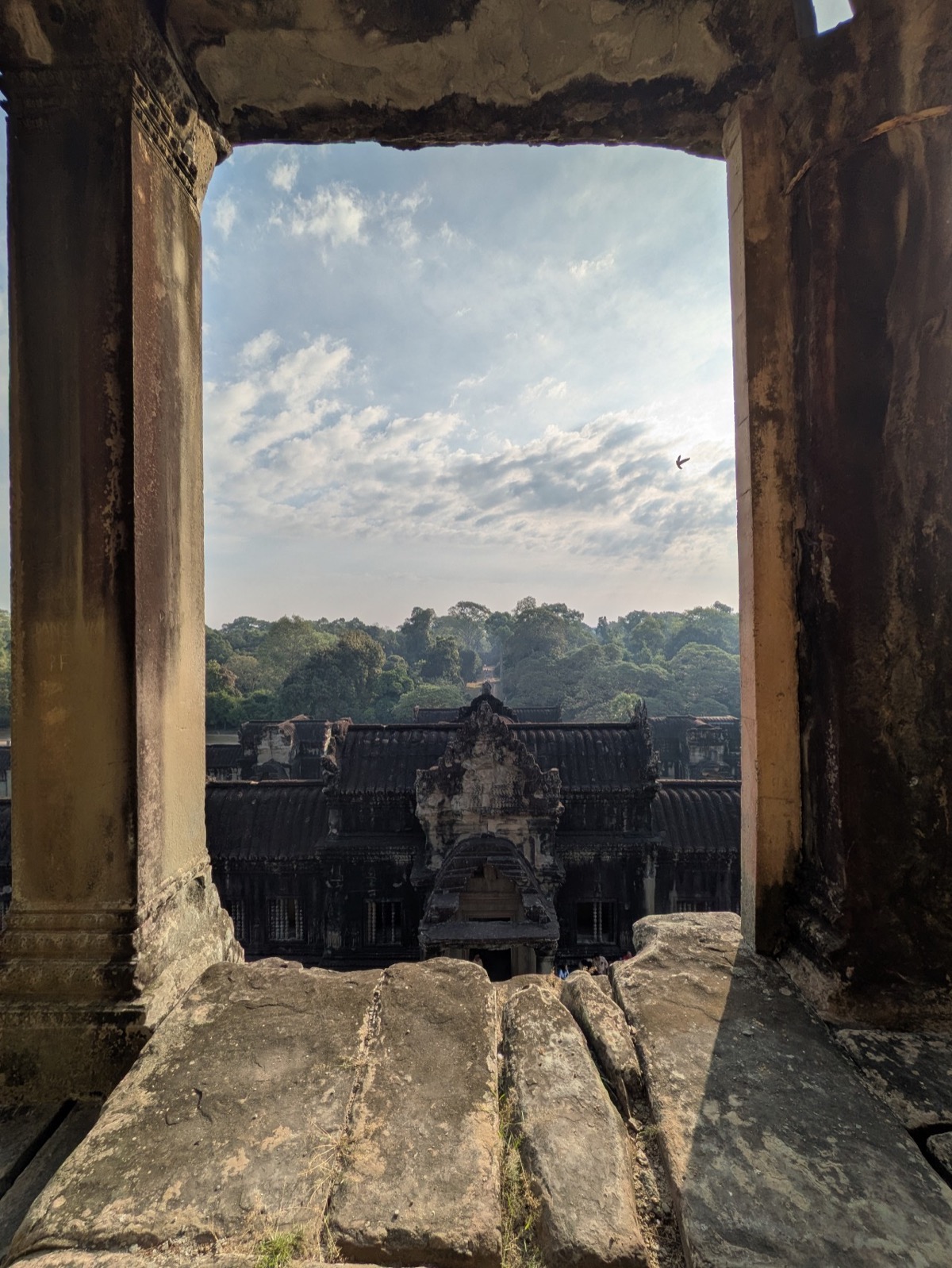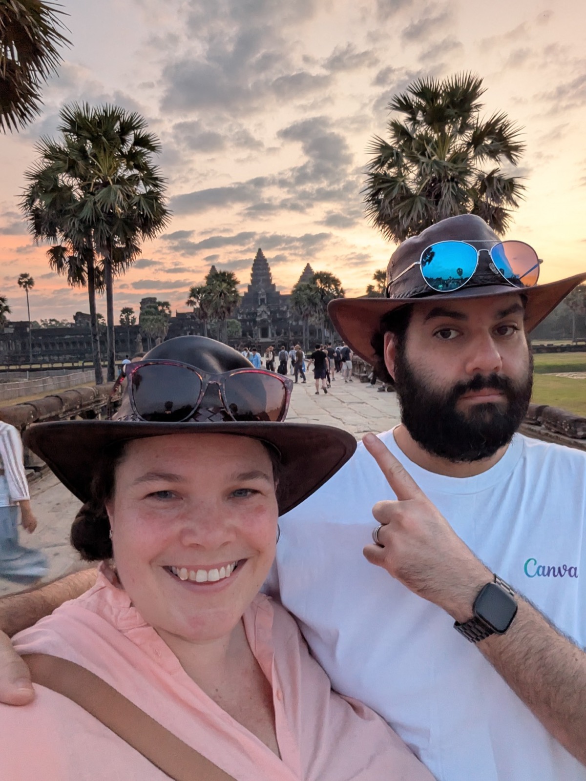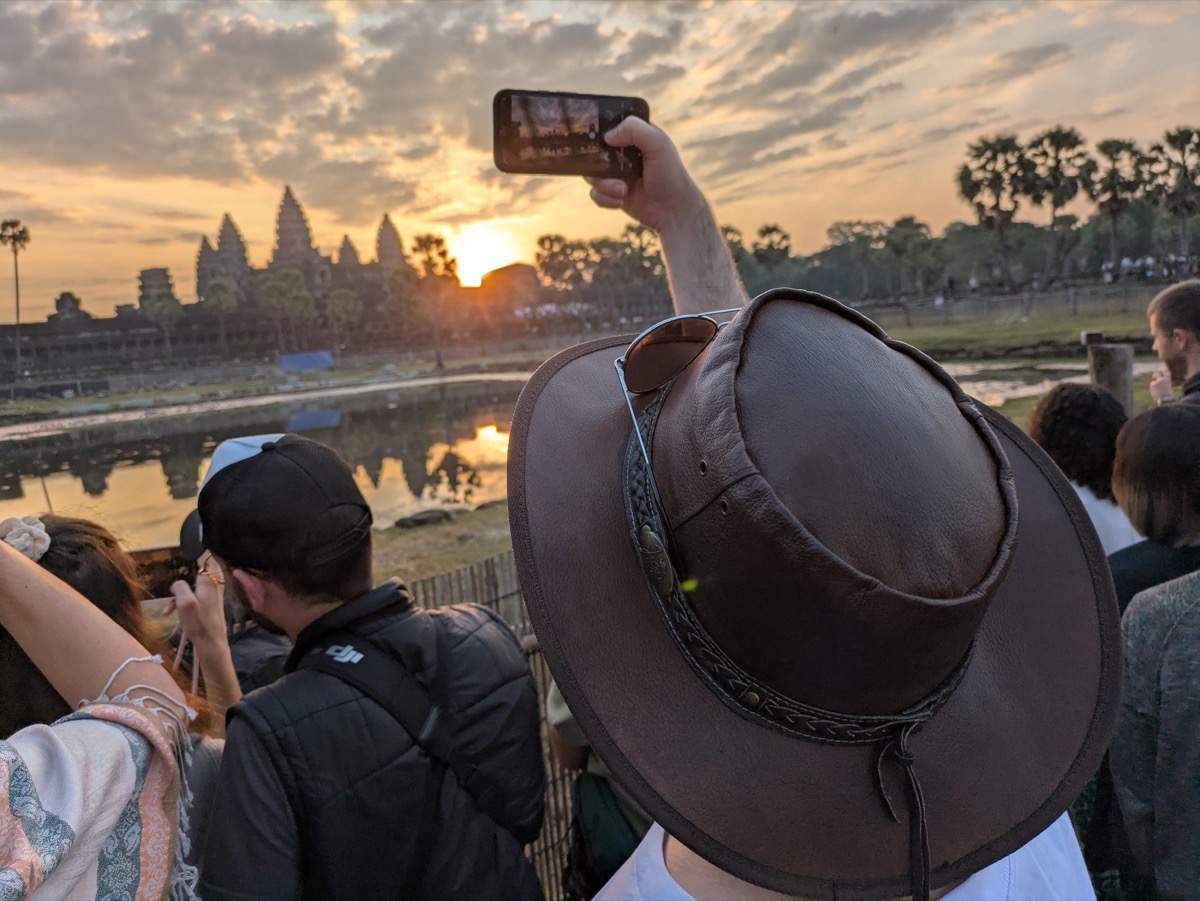 Anyway 5am it was pitch black and we were in the back of a Tuk Tuk going through the jungle. We arrived at Angkor Wat. Walking in the dark through a 900 year old temple you can not see at all is a strange experience. We walked down to the pools and started watching the sky change colour and reveal Angkor Wat it was so beautiful. There were so many people here but it didn’t even matter. After it had lightened the sun came up over Angkor Wat and made it beautiful. It was worth the early wake up call.
