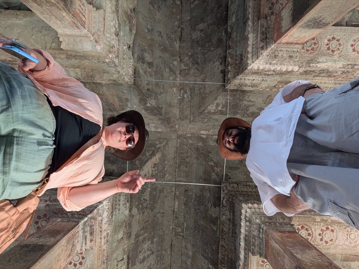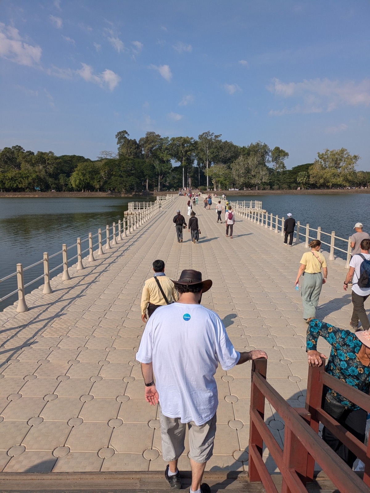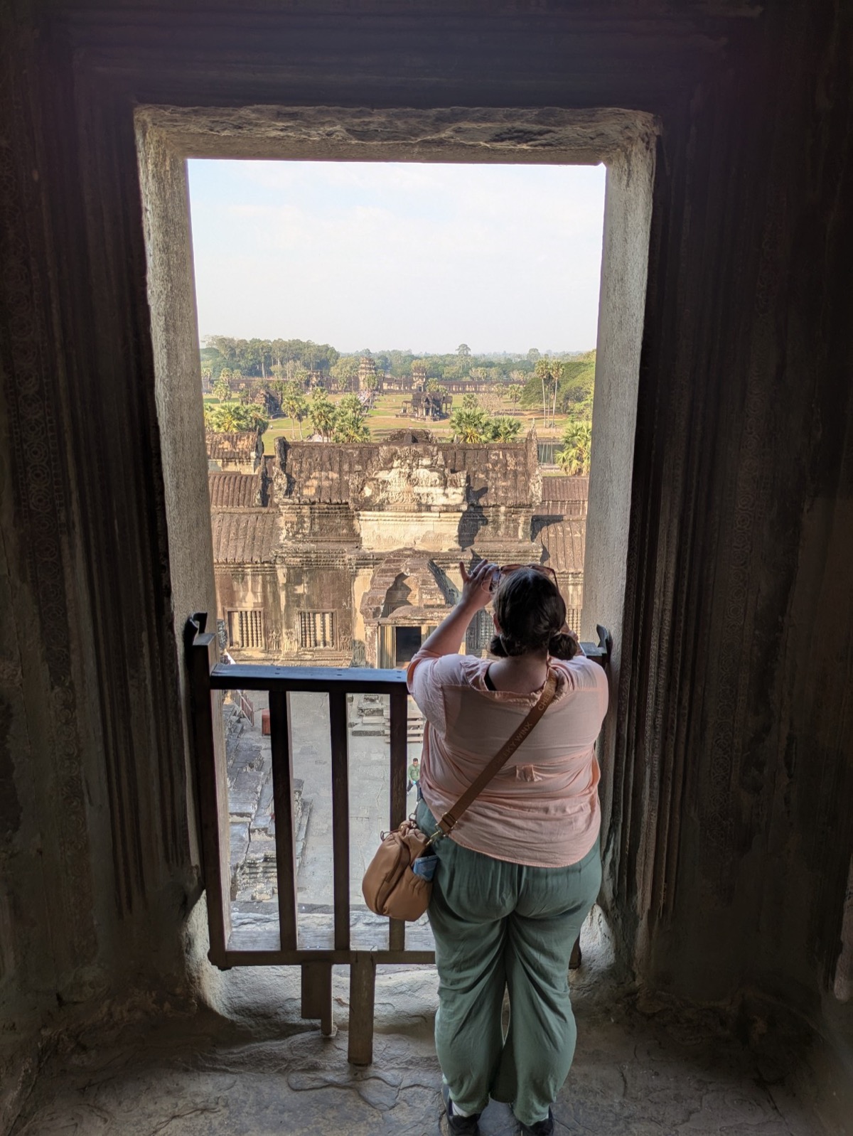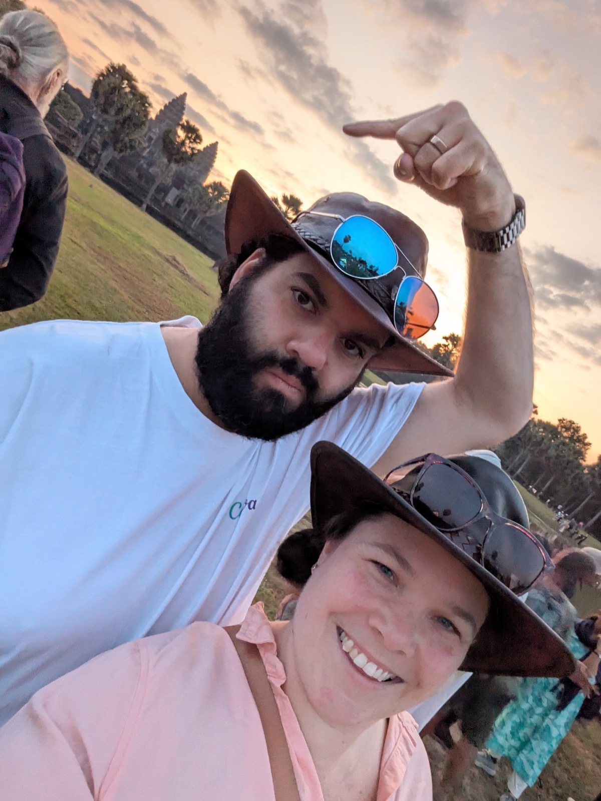 We then explored the site Angkor Wat is the largest religious building in the world and the perfect blend of symbolism and symmetry. It was built as the earthly representation of Mount Meru, the Mount Olympus of the Hindu faith, and the abode of ancient gods. The carvings and details are outstanding. This temple is just part of the Great City of Angkor and the largeness of this is beyond belief for something that was built so long ago with no machinery. We climbed to the top of the tower which is meant to represent Heaven. So many of the statues and motifs have been stolen between wars and occupations which is sad. Mr Neang also showed us where to take some selfies in the absolute centre of the temple. He called it the lucky spot. On the way out of Angkor Wat we had to walk over this floating bridge which I think was the highhlight of Anthony’s day it was so bouncy.