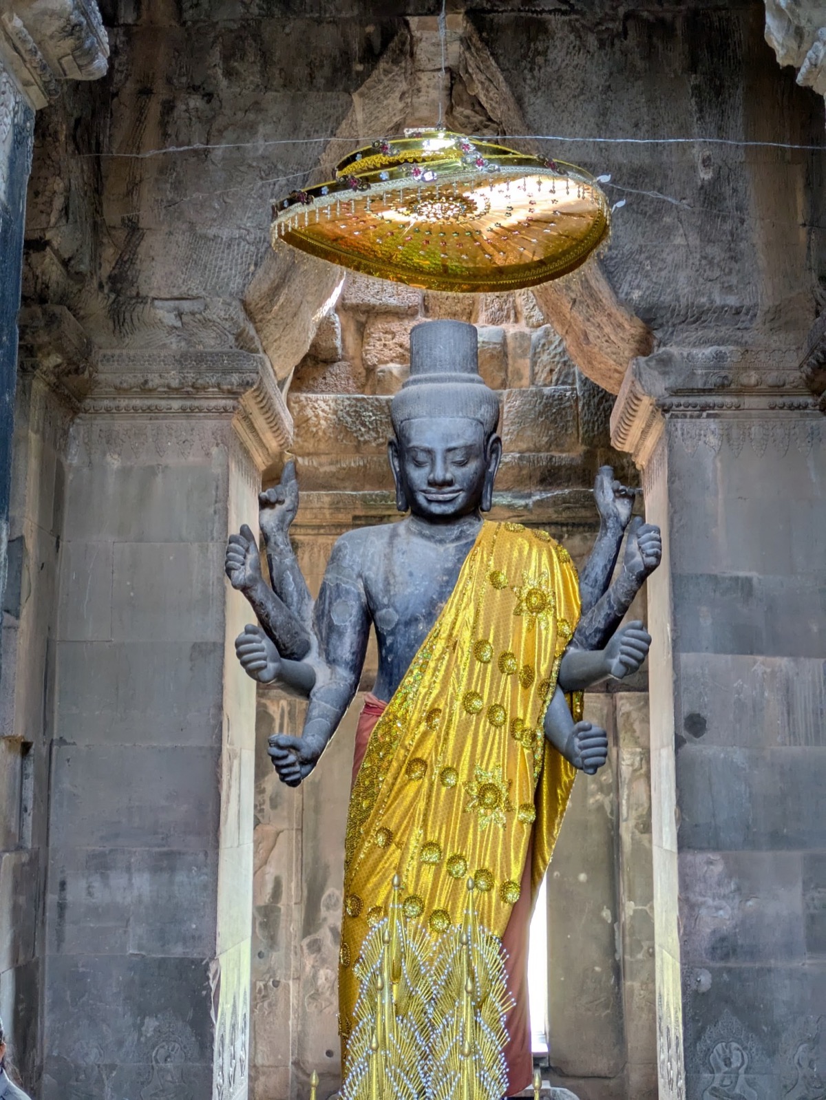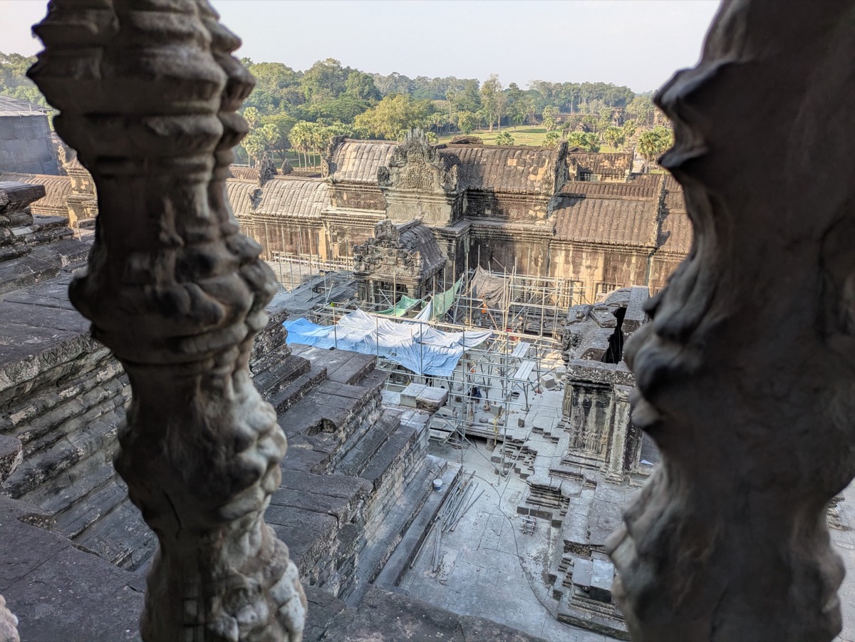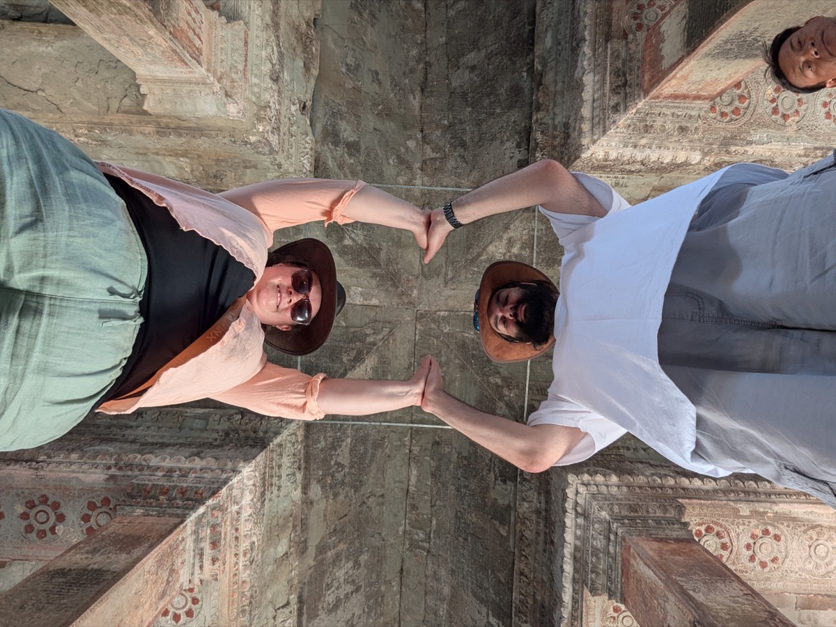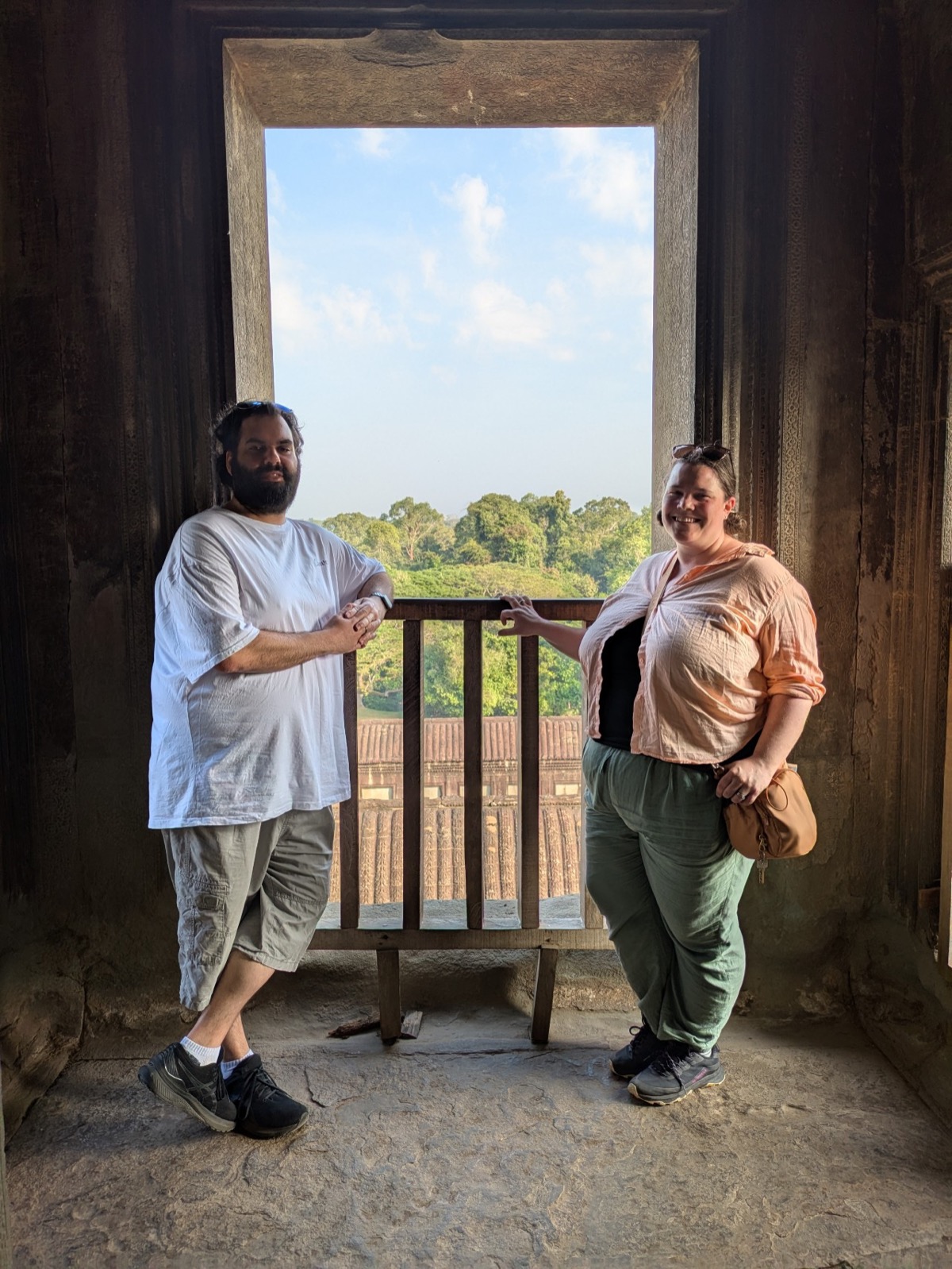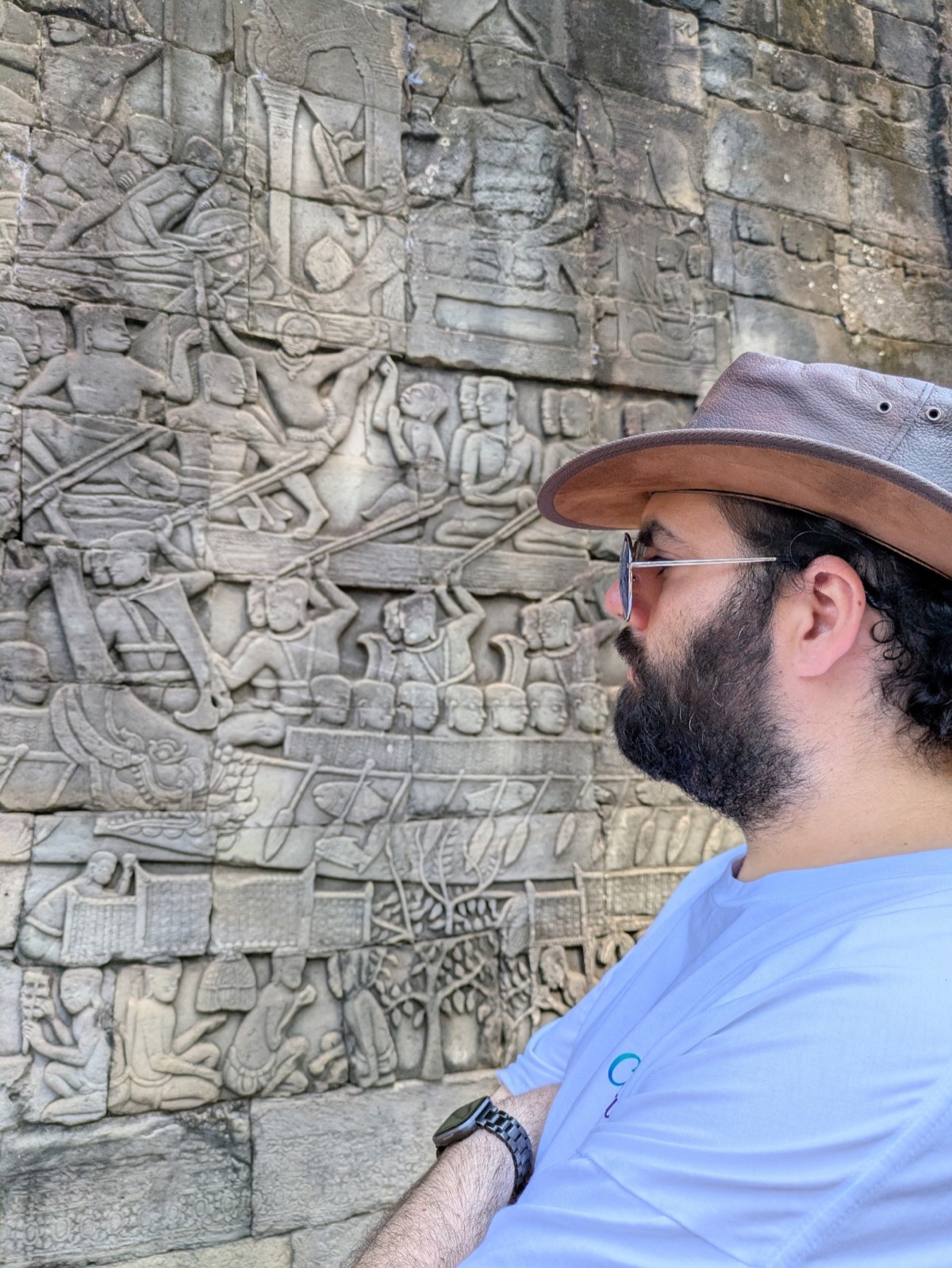 We then explored the site Angkor Wat is the largest religious building in the world and the perfect blend of symbolism and symmetry. It was built as the earthly representation of Mount Meru, the Mount Olympus of the Hindu faith, and the abode of ancient gods. The carvings and details are outstanding. This temple is just part of the Great City of Angkor and the largeness of this is beyond belief for something that was built so long ago with no machinery. We climbed to the top of the tower which is meant to represent Heaven. So many of the statues and motifs have been stolen between wars and occupations which is sad. Mr Neang also showed us where to take some selfies in the absolute centre of the temple. He called it the lucky spot. On the way out of Angkor Wat we had to walk over this floating bridge which I think was the highhlight of Anthony’s day it was so bouncy.