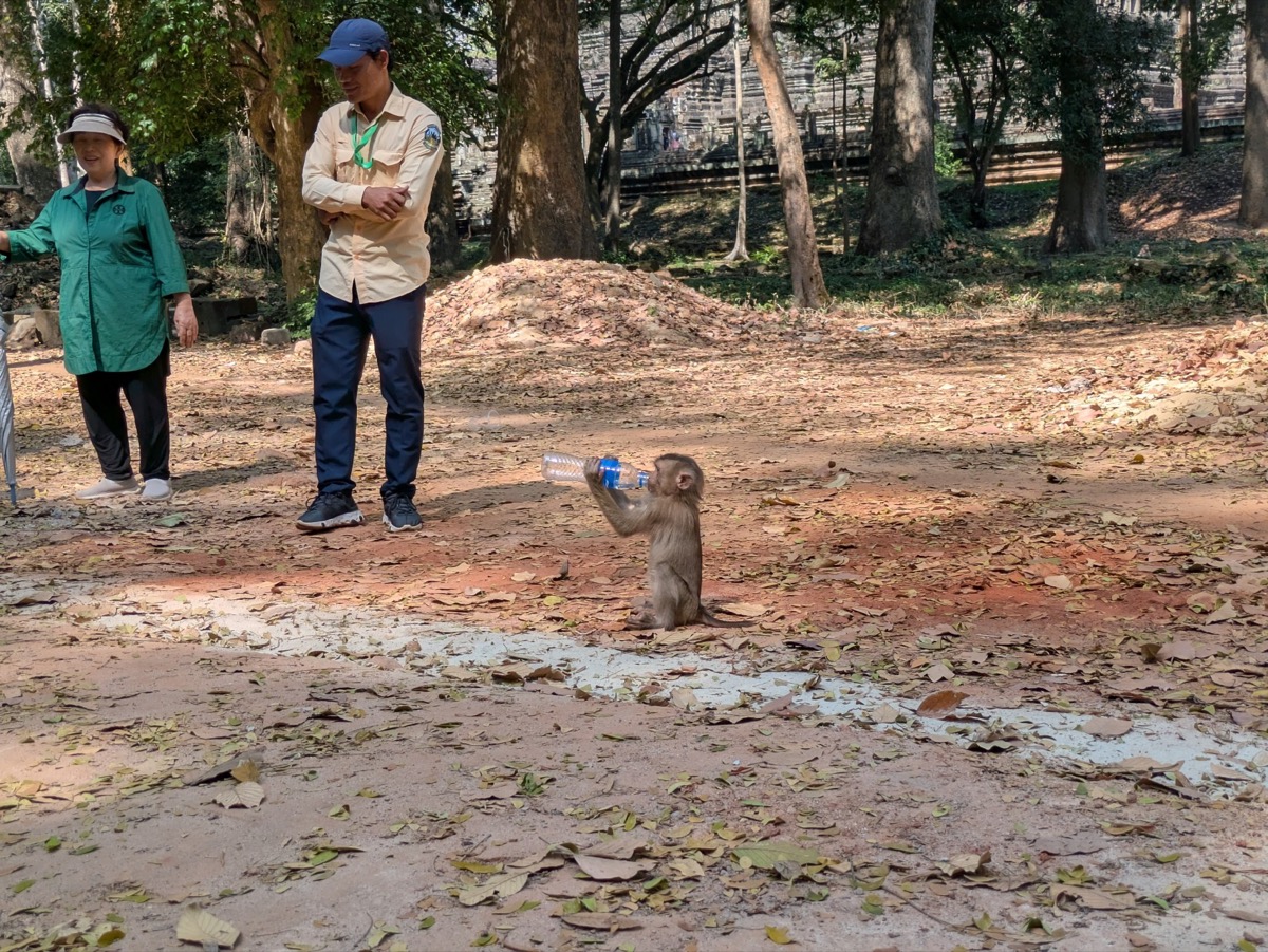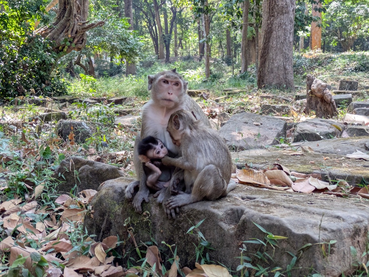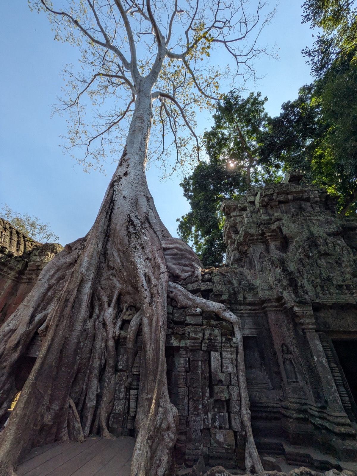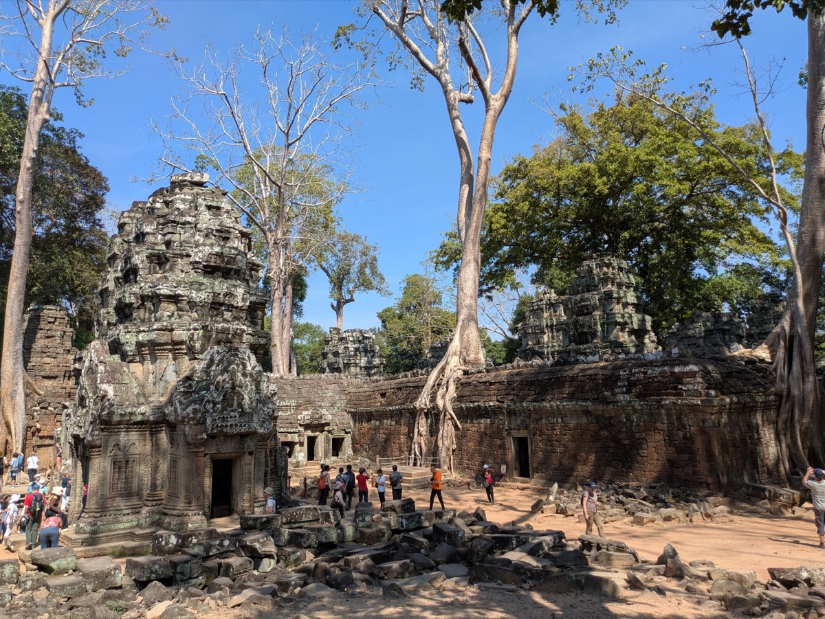 We got to walk to the next temple of Baphuon and got to check out the monkeys. They were so chill and cute. There was quite a few little baby ones and they were happy just chilling near us. We spent a bit of time with the monkeys. We walked around Baphuon which was cool as you could see the monkeys playing on it. We continued walking to the Elephant terrace which is next to where the old wooden royal palace was. It was then back in the car and then we were picked up for our last stop which was Ta Prohm Temple.