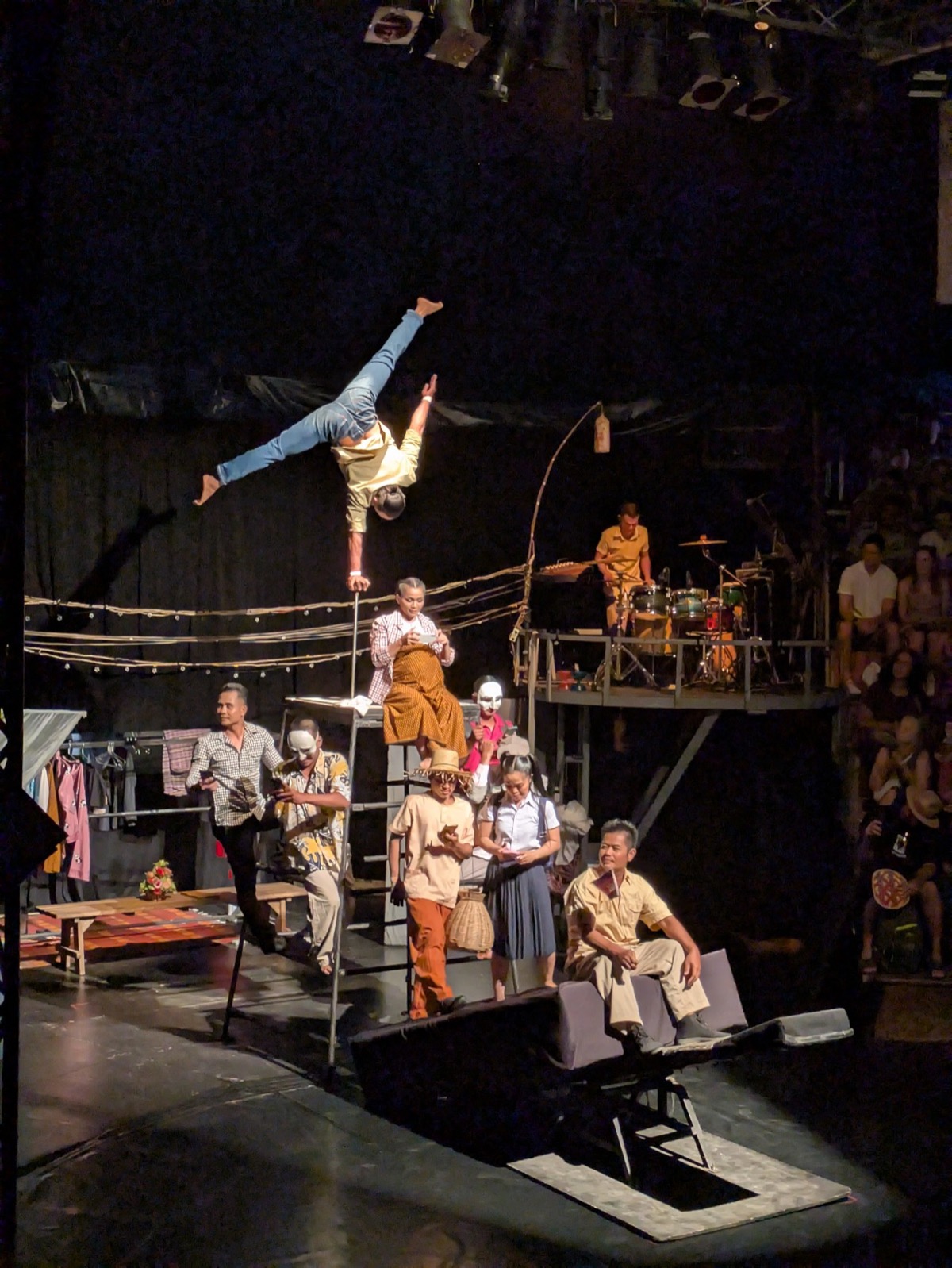 Phare is the Cambodian circus and it is important to know how this started because this is peak ethical travel. Nine young Cambodian men founded parent company Phare Poneu Selpak in Battambang in 1994, after returning home from a refugee camp after the fall of the Khmer Rouge. At the camp they took drawing classes and found art to be a powerful tool for healing, so when they returned home they began offering free drawing classes to street children. They went on to open a school offering formal education and professional training in visual arts, theatre, music, dance, and circus skills to the students for free.