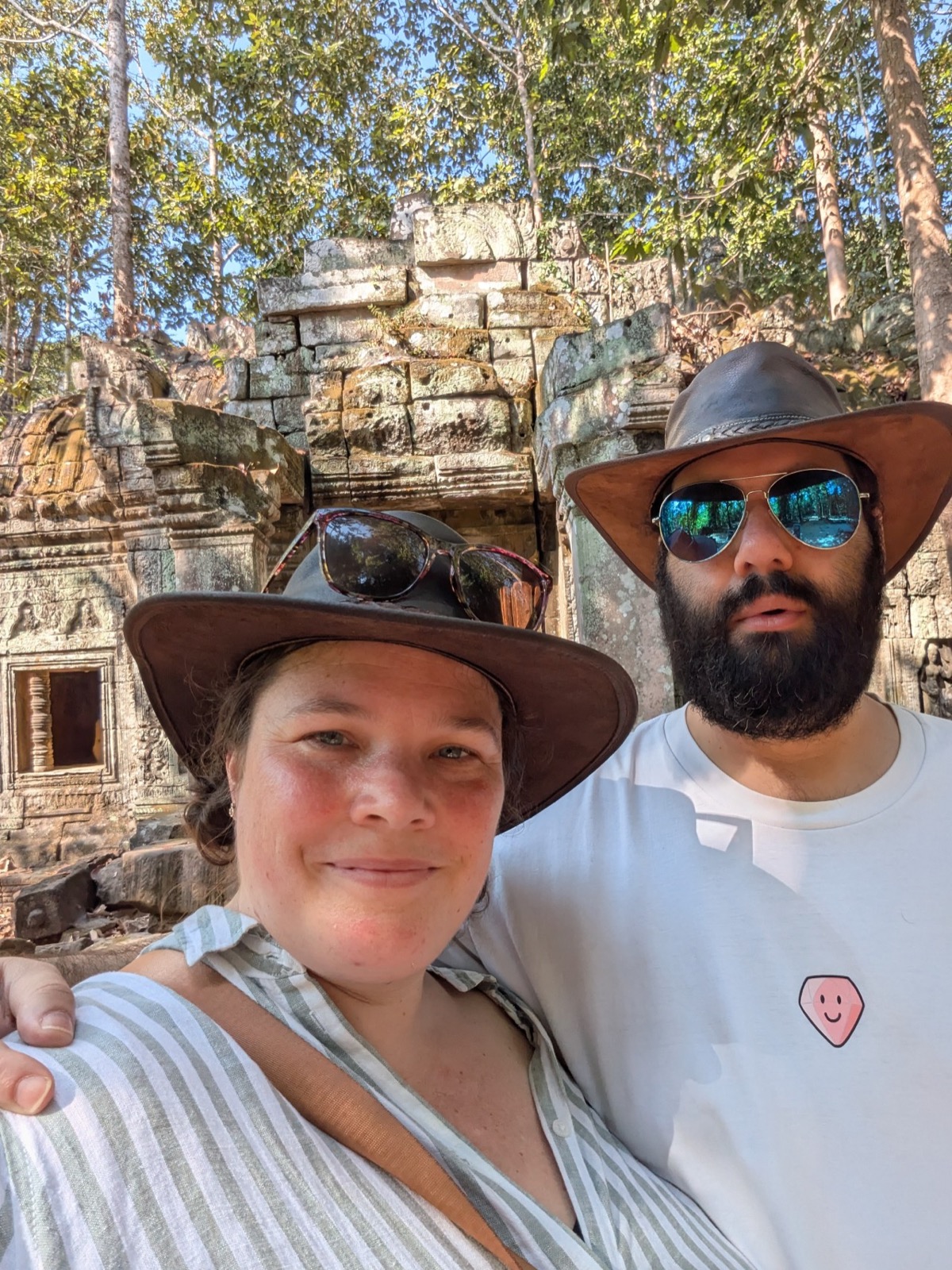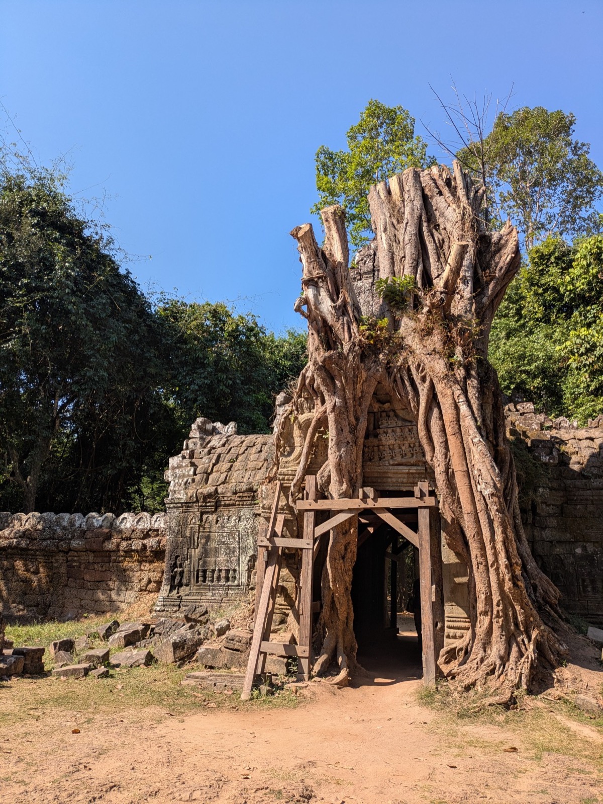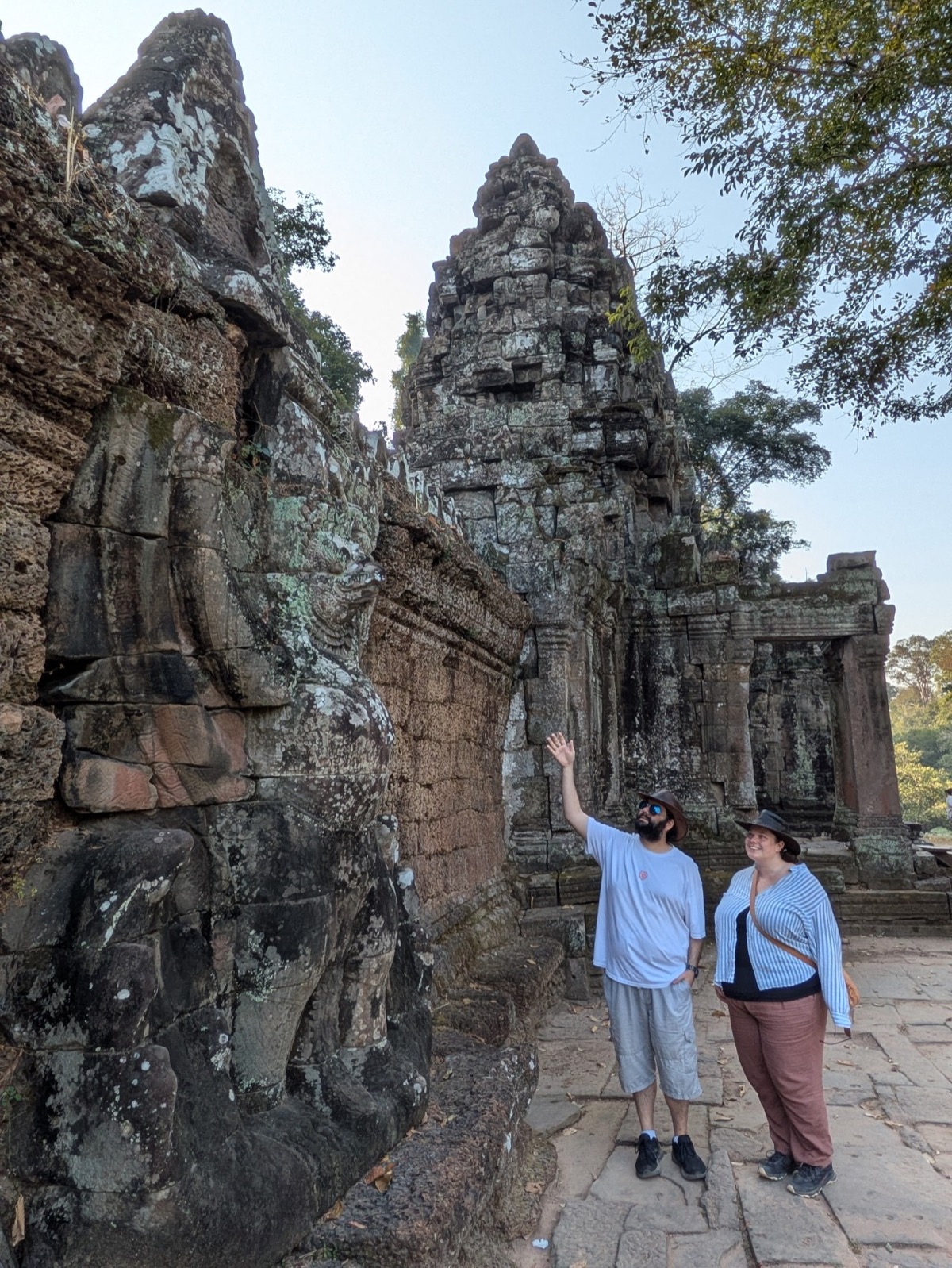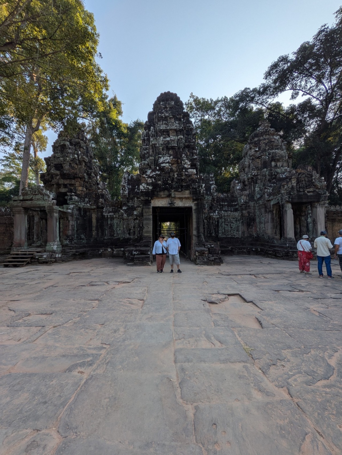 Our first stop today was Preah Khan temple. Preah Khan was built in the 12th century for King Jayavarman VII to honor his father. It was said to have housed almost 100,000 officials and servants. When we arrived one of the Angkor Wat workers took it upon himself to borrow my phone and treat us to a photo shoot on the outside of the temple. He moved us around and told us where to stand and what poses to make. He hardly spoke english but he was pretty funny. Also his photos turned out pretty good.
