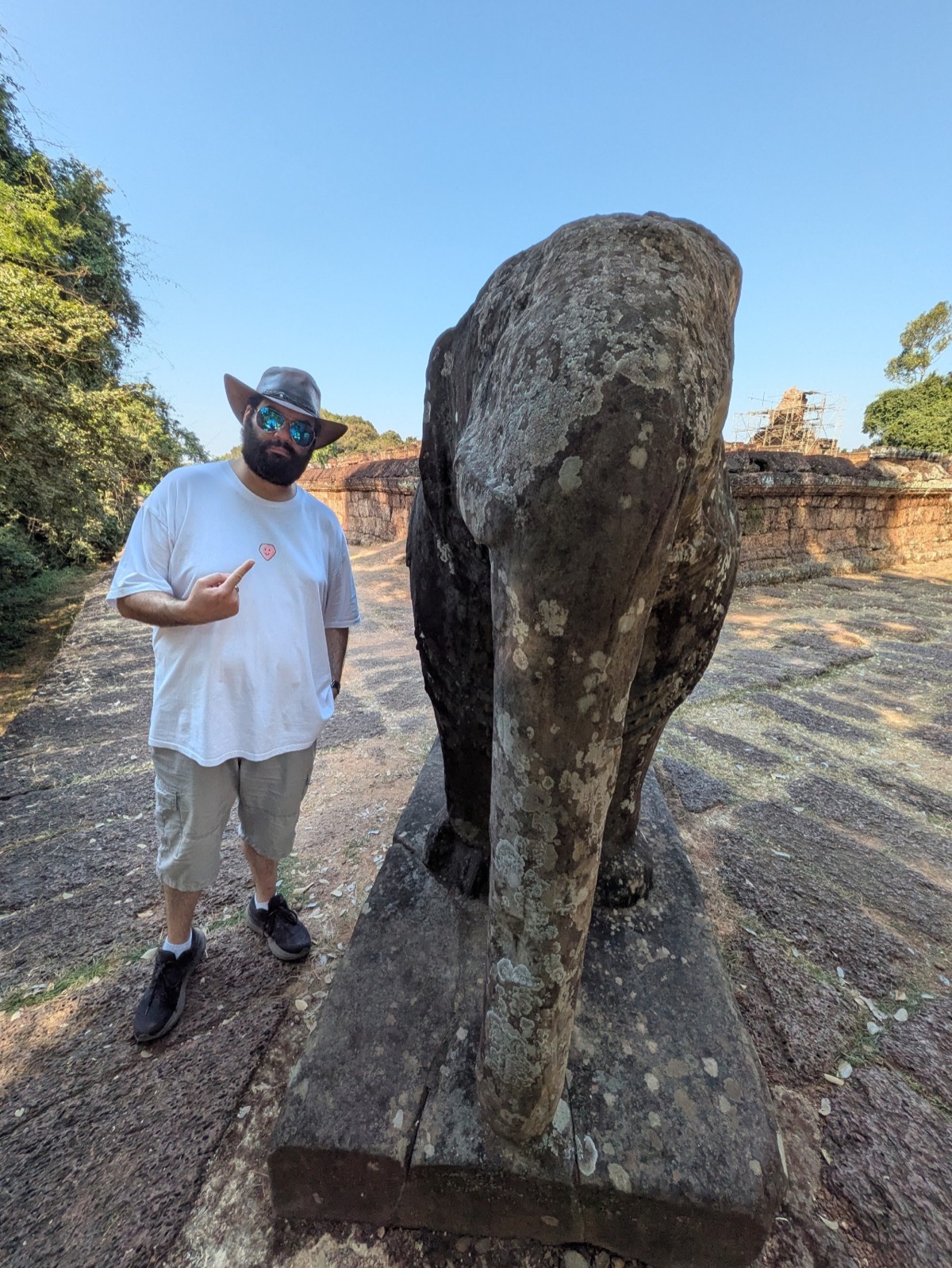Next we moved onto a very different style of temple. East Mebon temple is the oldest temple we visited being built during the reign of King Rajendravarman (reign 944 to 968 AD) it was build with much different sandstone and had some really big elephant statues on it to. Apparently back in its hey day it would have been surrounded by water.