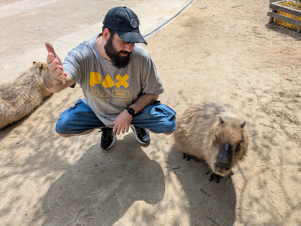We also got to feed and pat the capybara which literally have to be one of the laziest animals in world. I also got a picture of Anthony having a gasbag with one of them.