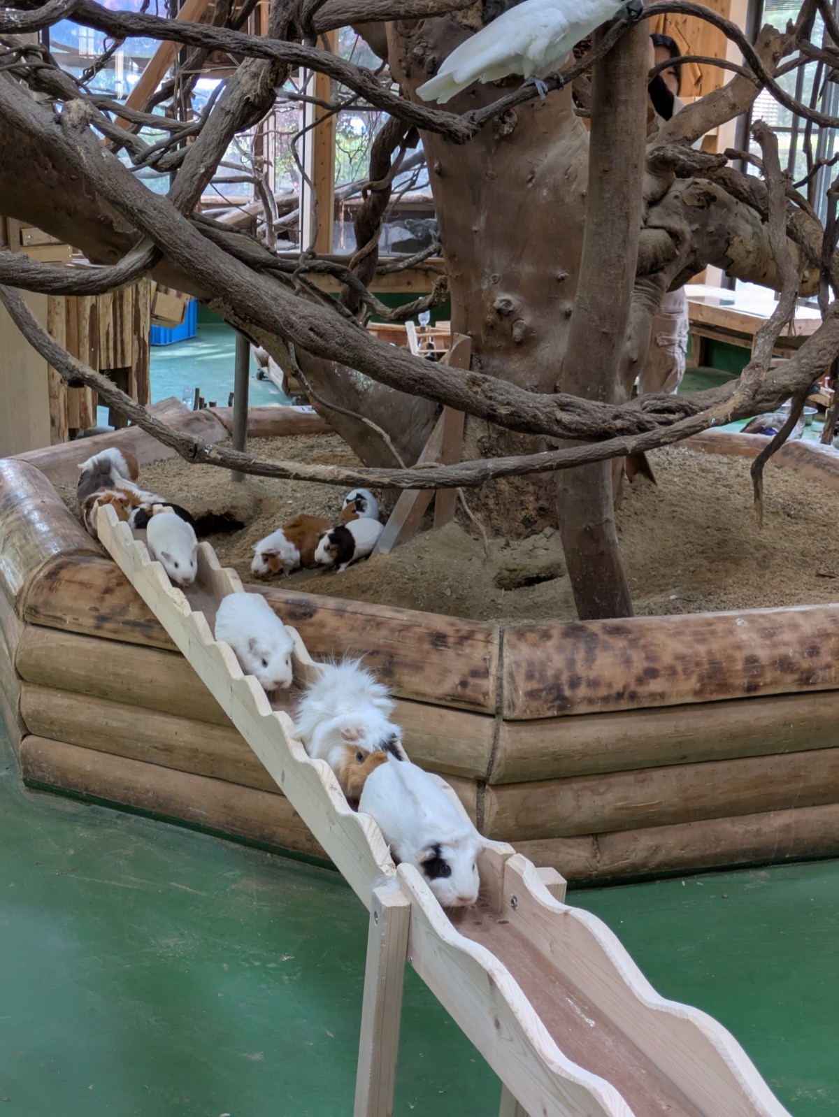 At 4:30pm it was time for the Guinea Pigs to go to bed and the zookeeper put down the bridge and everyone watched as all the Guinea Pigs lined up and ran across the bridge to go home. It was exactly like the video. Well worth the random trip out here.