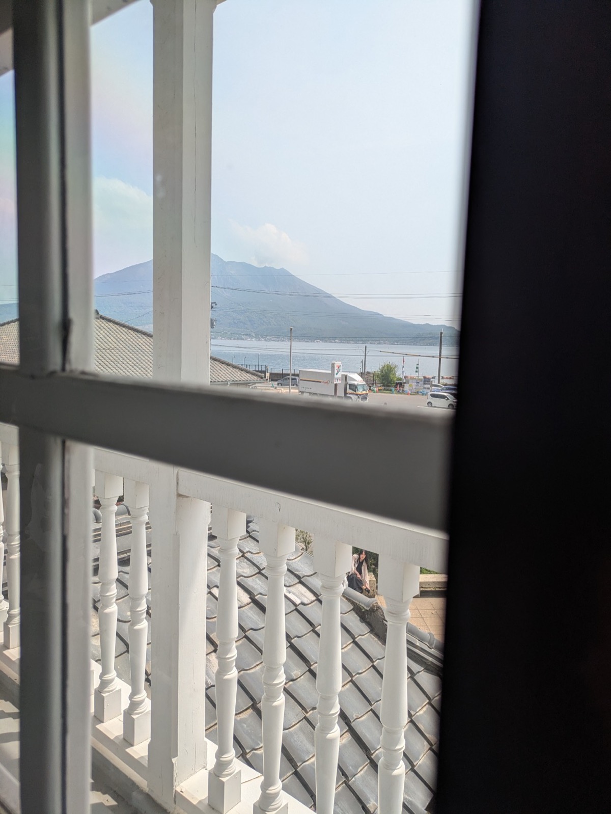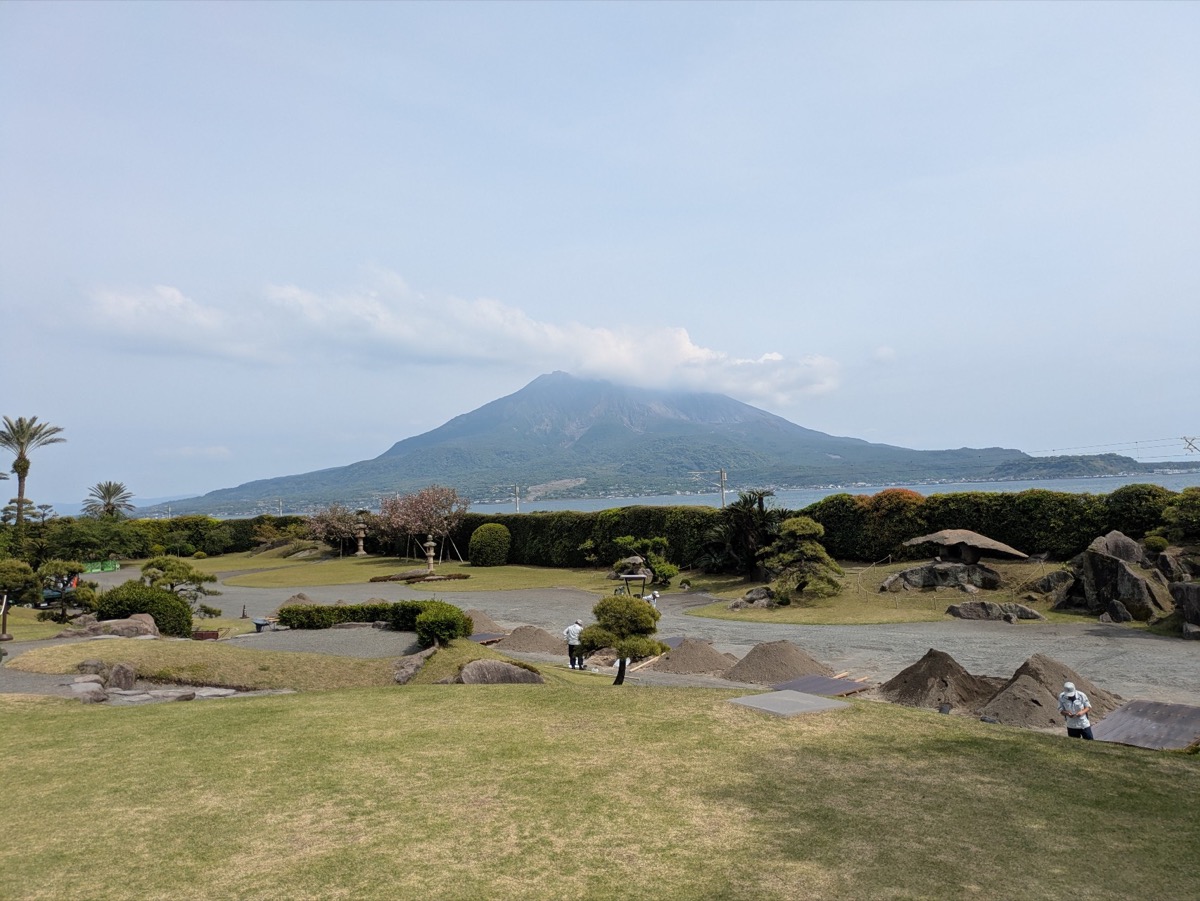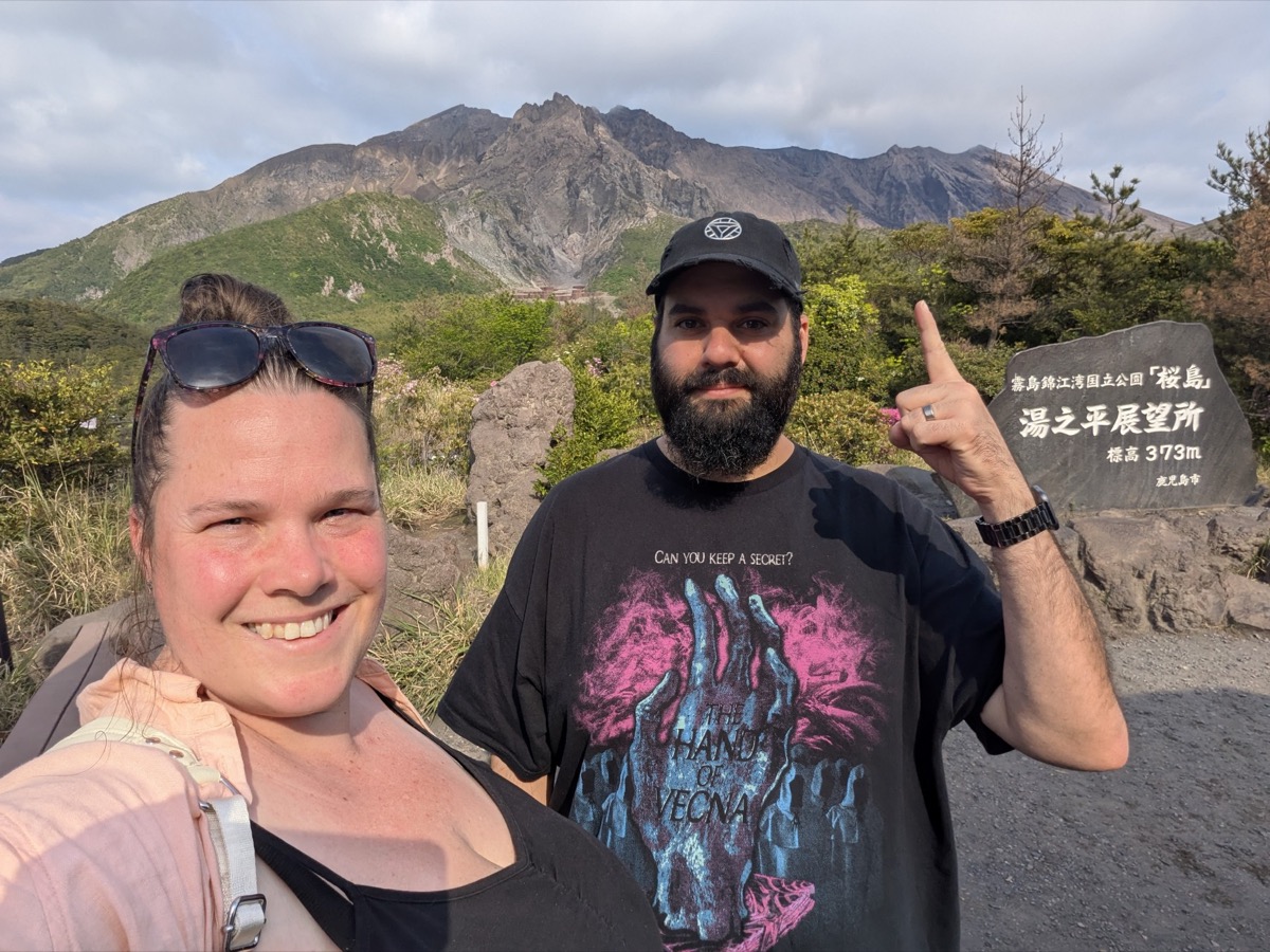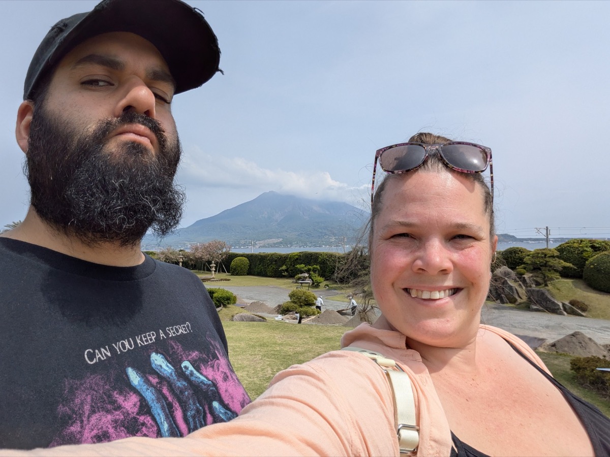 Our last full day in Japan! We decided to make the most of our JR Pass and head from Fukuoka right down to the bottom of Kyushu to visit Kagoshima. Kagoshima is known as a sea side city which is overlooked by Japan’s most active volcano Sakurajima. On the bullet train we flew through the area. It is about 281 km between the two places and on the bullet train we arrived in 1 hour 15 minutes. Bullet trains are very cool but also if you don’t have a JR pass it is very expensive (About $140 AUD one way). When we arrived we jumped on a hop on and hop off bus to our first destination. Once there we got distracted by a cute starbucks and you could even see Sakurajime (the volcano) from the window.