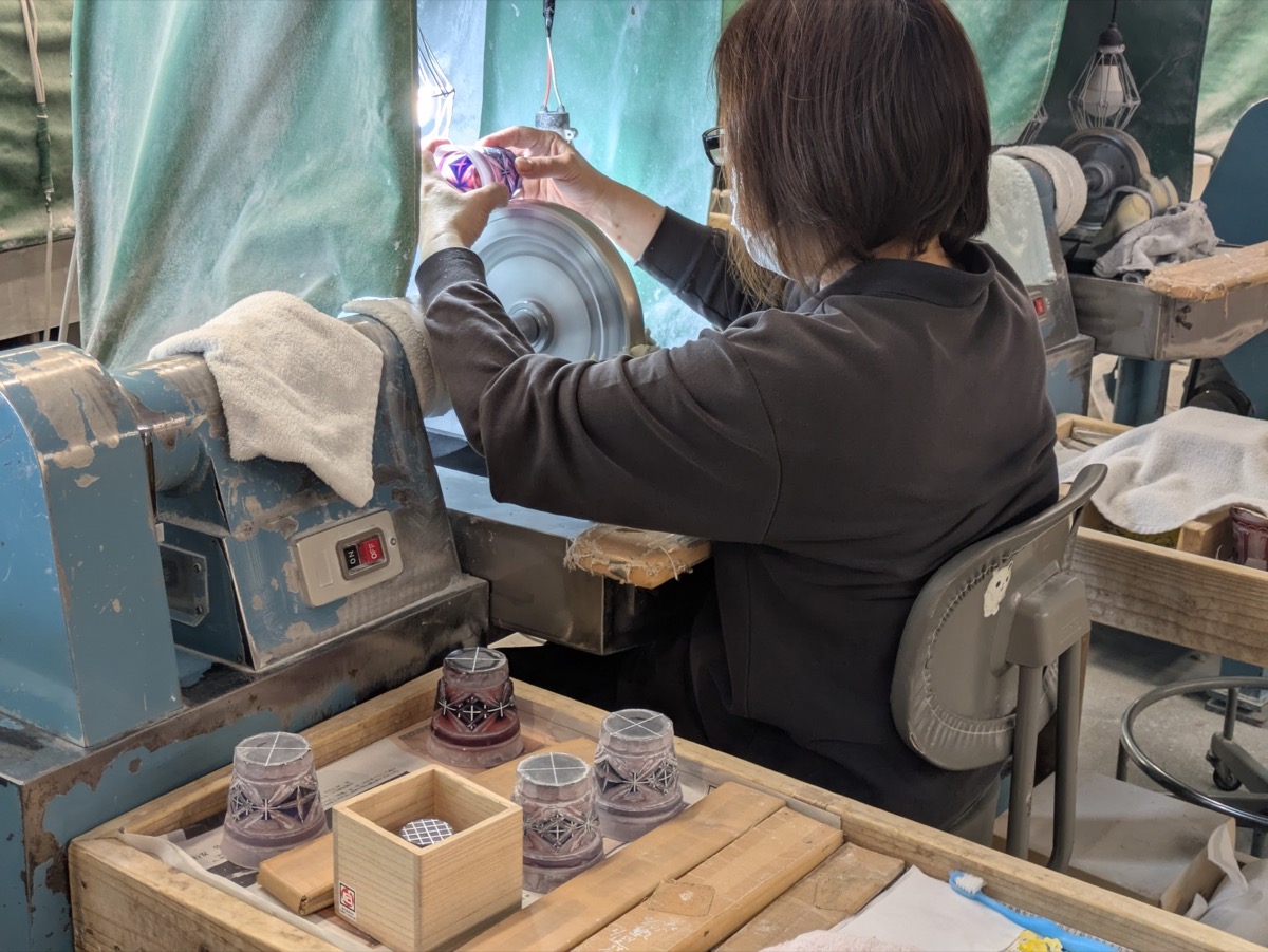 We stopped first at the glass factory Satsuma Kiriko Cut Glass it is an old form of glassmaking that is still all completely done by hand. We were lucky enough to see them working as they have the factory open for viewing. The glass works are so expensive but watching them cut it I can see why.
