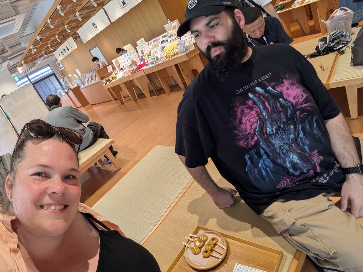 We continued to Sengan-an Garden. We got to see the UNESCO certicificate and then checked out some of the gardens. It was nice but not really my thing. We tried Jambo Mochi which is famous in this area. Each one has 2 sticks in it as apparently they represnt the 2 samurai swords. Either way there were pretty good.