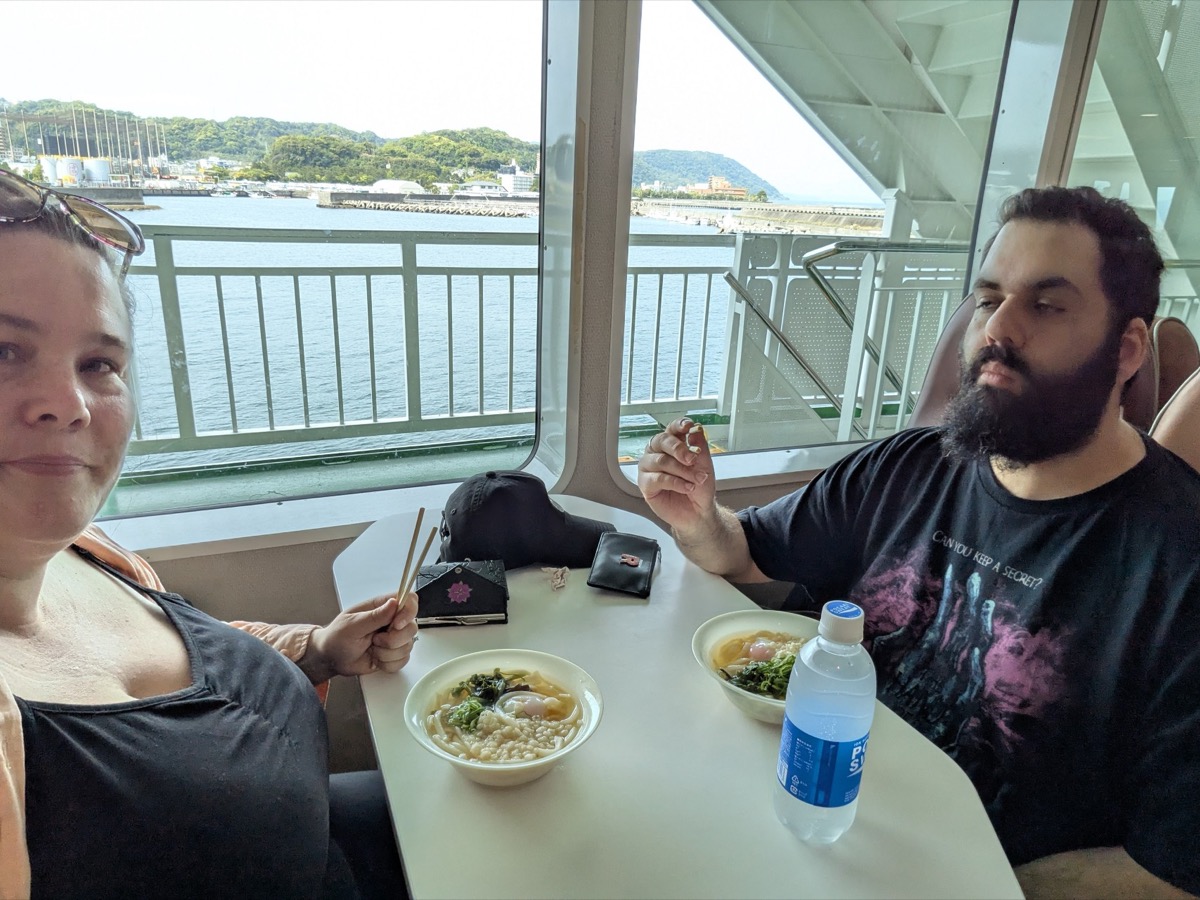 It was then back on the bus to head to the ferry terminal to head over to Sakurajima. Sakurajima is one of Japan’s most active volcanoes, spewing smoke or ash on an almost daily basis. Sakurajima is also one of the world’s great active volcanoes at 1,117 meters tall and 50km around. It amazes me that people happil live so close to this volcano. There is seriously Ash falling down daily and it erupts very often (not huge ones, but it can spit out rocks.) We took the ferry over to check out this volcano and decided to do what the locals do which is have a bowl of the famous Udon on the 15 minute ferry ride across. It was amazing.