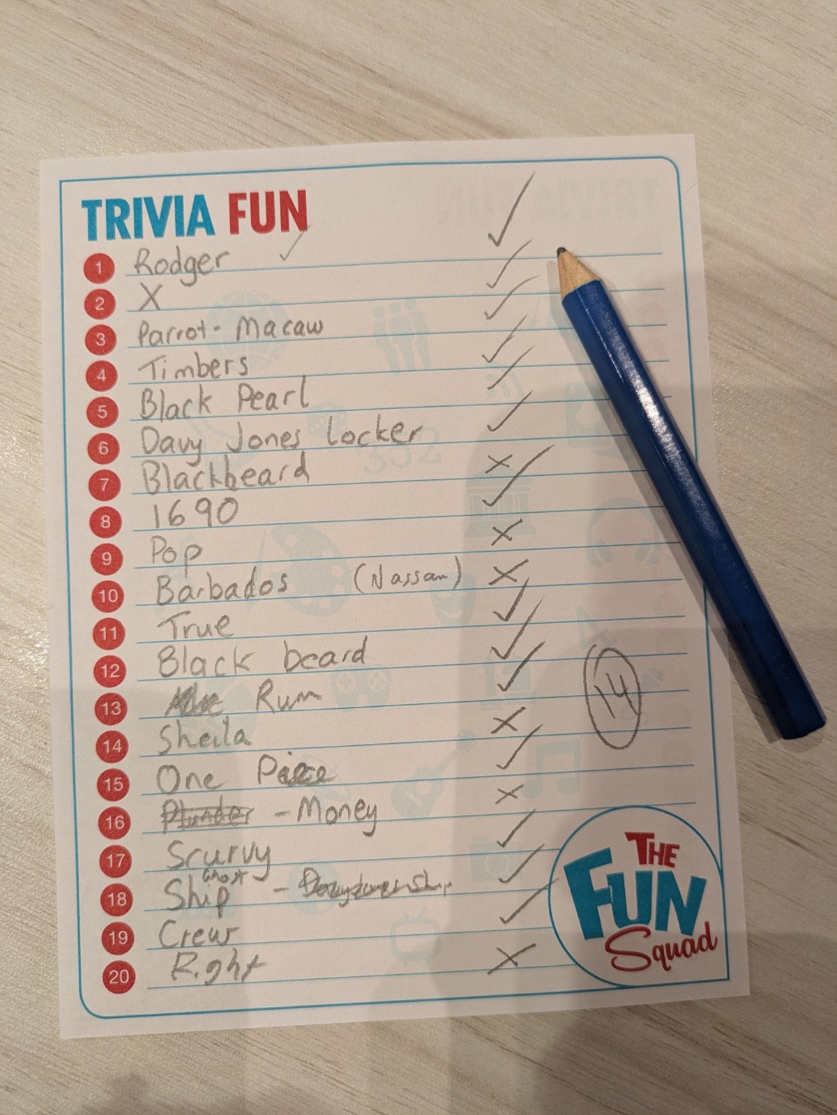 We decided to head to some Trivia and managed to get ourselves a seat at the Encounter Hotel. The service here was amazing and we spent the time playing Italian cards until trivia. We also got to see the amazing towel animal mascot! We did Pirate trivia and did suprisingly alright. We then decided to hang around and try celebrity trash trivia. This is where you are told 3 items from a actor or actresses movie and you have to guess the actor or actress. We did really well on this one. We were only 1 point off equal 1st.