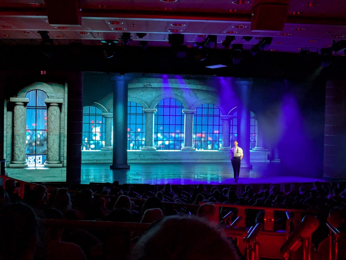 We went forward an hour overnight so we all lost an hour sleep. It took us a little while to get ready in the morning but eventually we dragged ourselves downstairs for Breakfast. We had breakfast at one of the main restaurants as Anthony was keen for Eggs Benedict and Chris wanted pancakes. The food was suprisingly good for a quick morning service. Afterward we went to the Cruise director Ben’s presentation on Fun on board!