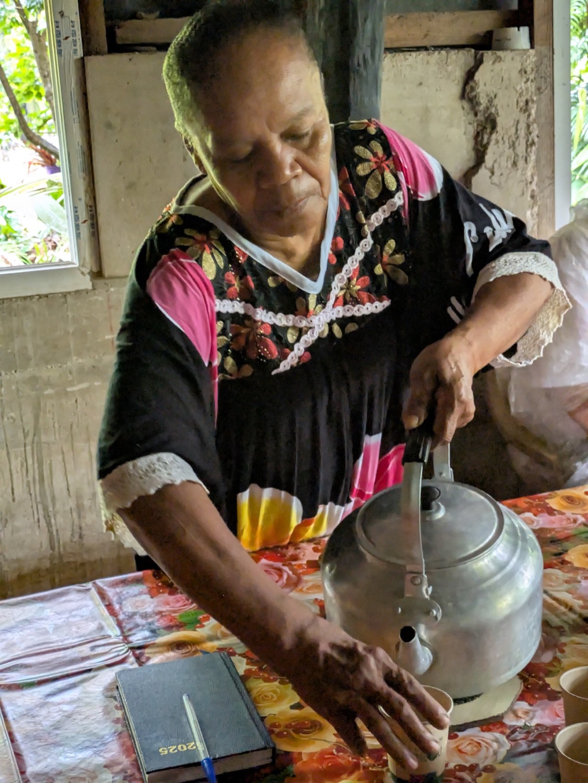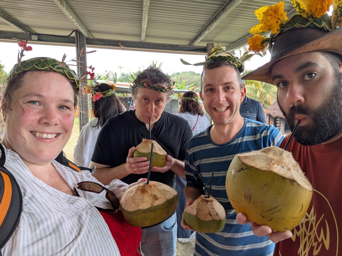 We stopped in a little hut to visit the owner of the property and her and our guide explained how the harvest the vanilla. In Lifou, vanilla is grown on small family farms. The vanilla plant is actually a type of orchid. It grows as a vine and needs to be supported by trees or posts. Even though vanilla flowers can be pollinated naturally in some countries, in Lifou, the local bees don’t pollinate the flowers. That means farmers have to do it by hand. When a flower opens (which only lasts for one day), the farmer carefully uses a toothpick to transfer the pollen from one part of the flower to another. It’s really crazy! After the explanation the lovely owner made us some vanilla tea and coffee to try and gave us some vanilla sugar. It was actually really good.