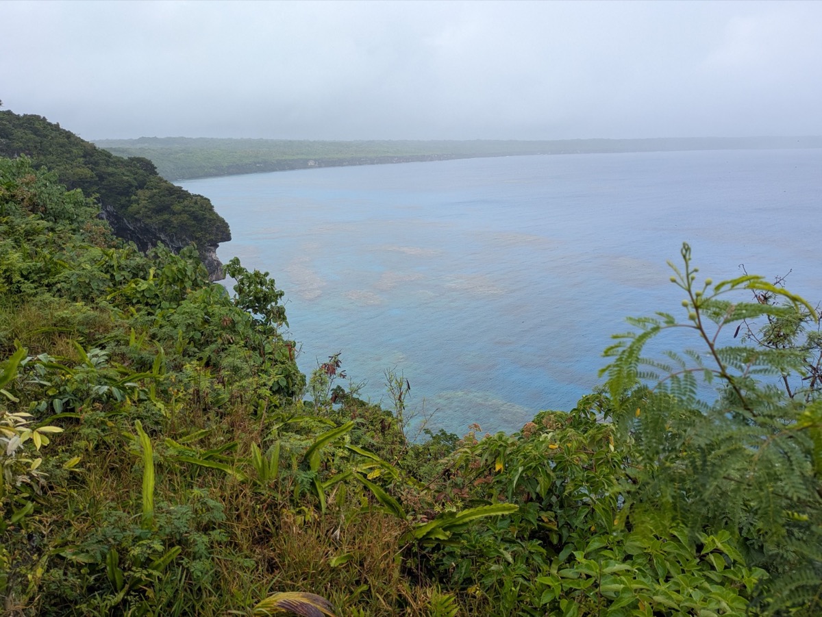 Next we headed to the Cliffs of Jokin. The Jokin Cliffs are these cool cliffs that are about 40 meters above the ocean and offer stunning views of the clear blue lagoon below. It was still raining the time so we couldn’t go down the stairs. But the view from the top was amazing.