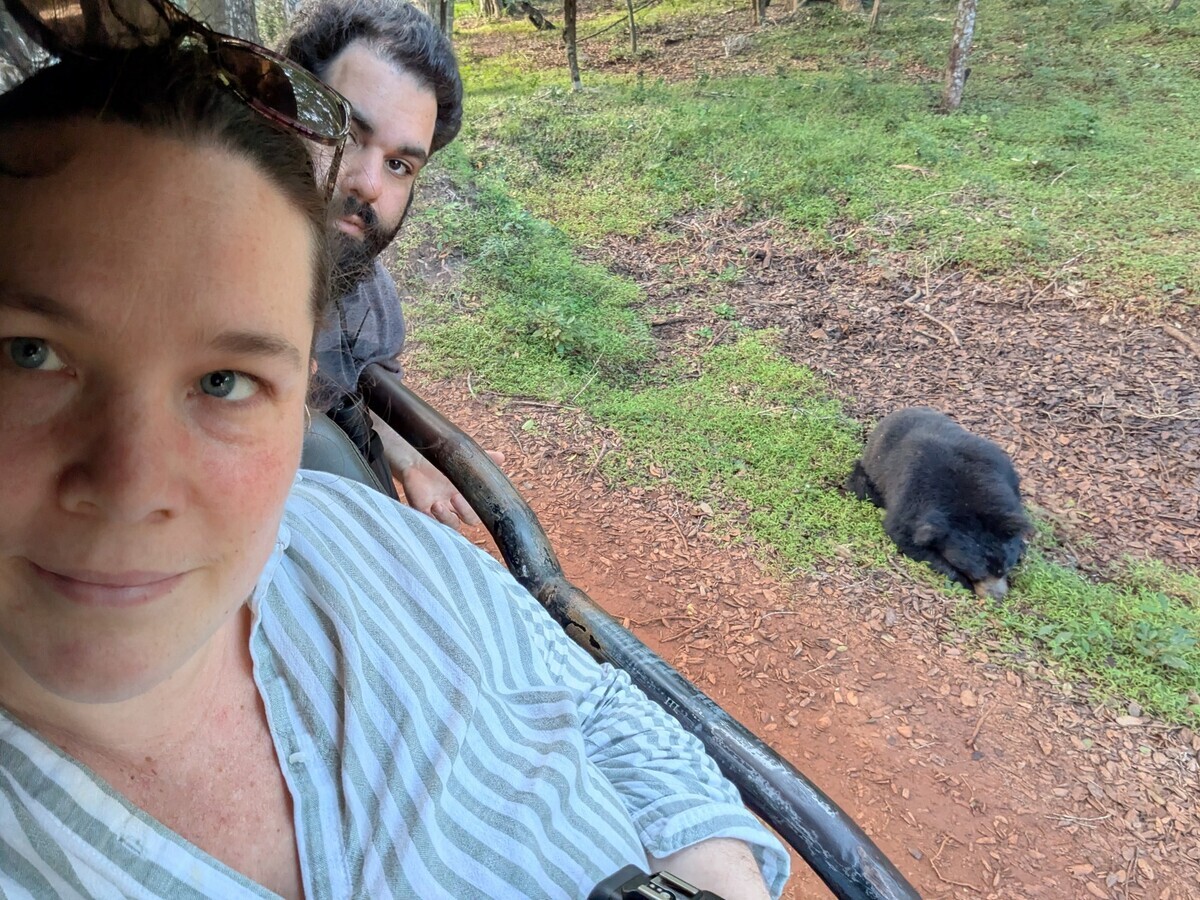 We were not far into the park when we came across a whole lot of jeeps parked to the side. We drove up and into line and saw a beautiful sloth bear just walking along. These are pretty rare to see in the park so even our driver was excited. Even better the sloth bear decided to wander along next to the car and then curl up and have a sleep. It was such a magical experience. It was also the main animal Anthony wanted to see so to have it happen so early was remarkable.