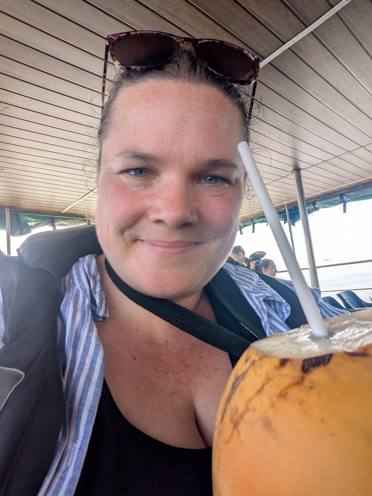 We were picked up by tuk tuk at 6:15am and taken to the head office to pay for the tour. We were given the option of sea sickness tablets and then we were walked down to the wharf. The boat isnt the most comfortable you either have weird chairs down the bottom level or matresses up the top, but that didnt matter as there were places to sit. They also feed you throughtout the tour and the service is amazing.