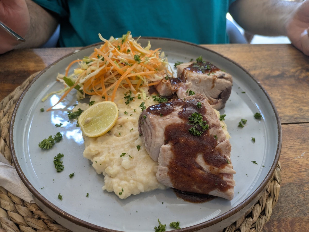 After the whale watching cruise we grabbed some lunch at a local resturant where Anthony made friends with the owner. We tried the local tuna steak which was actually pretty good.