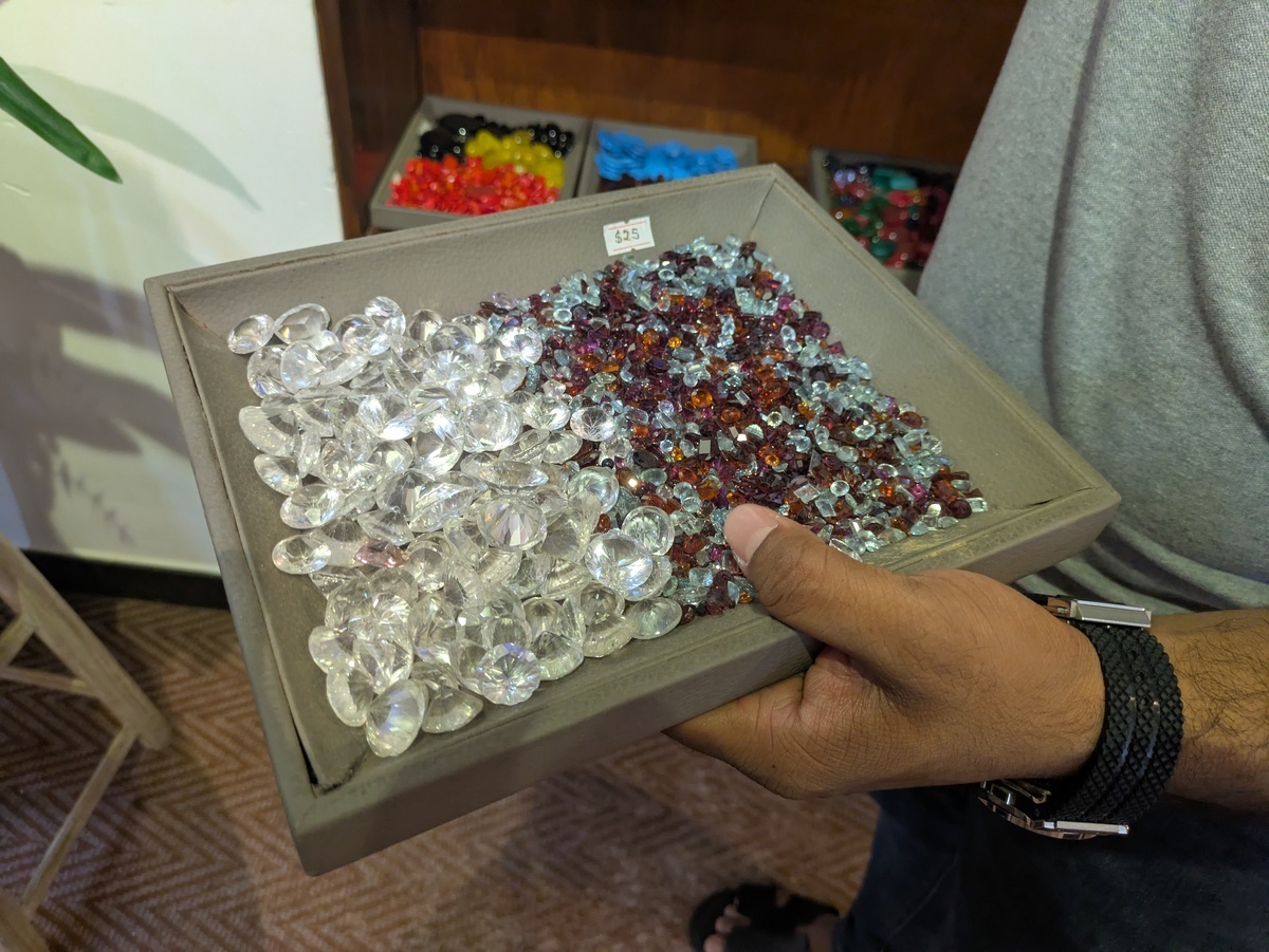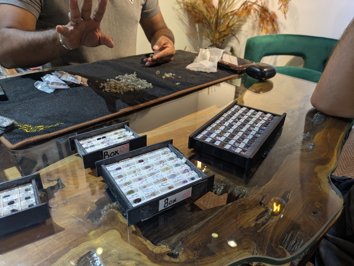 We had to run back to the hotel as we had a tour picking us up. We couldn’t book into the gemstone tour we wanted but we saw another tour which apparently explained gem stone of Srilanka. We were picked up and taken to a house in the outskirts of Colombo where we met Basith who showed us through his collection of gemstones, explained the process of making gems and showed us the differences in quality. The most amazing thing was how many different natural colours of saphire there are.